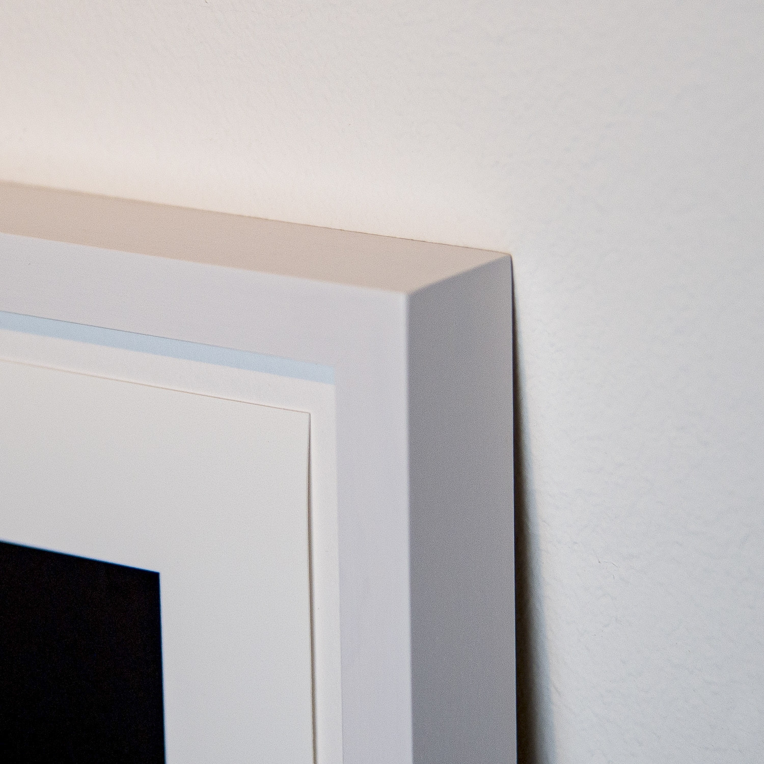 Handgefertigter hellweißer Buchen-Holzrahmen, Außenmaße ca 51 x 51 cm, inkl. Distanzleiste, inkl. Museumsglas und rückseitigen Aufhängung, der Fotoprint wird frei hängend montiert