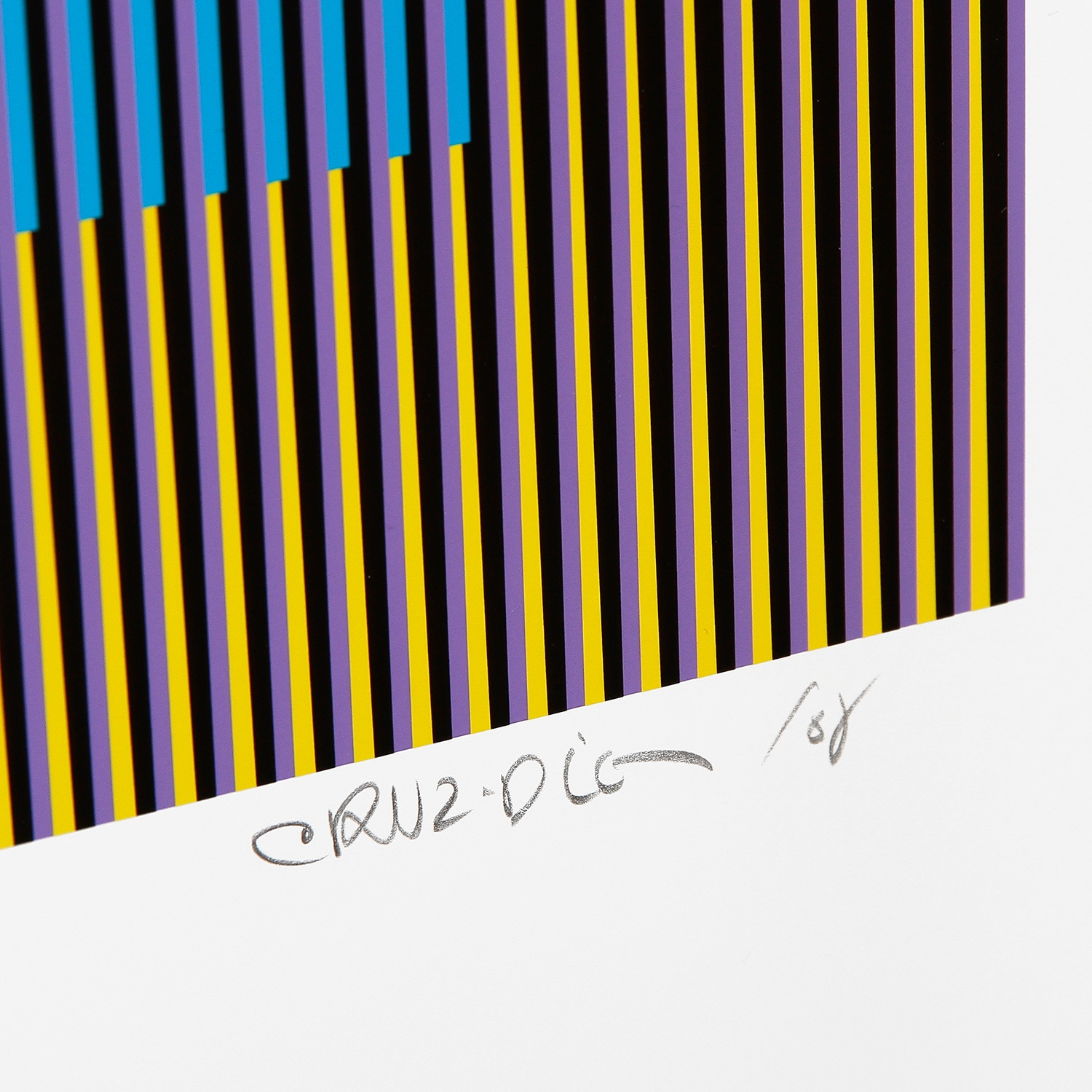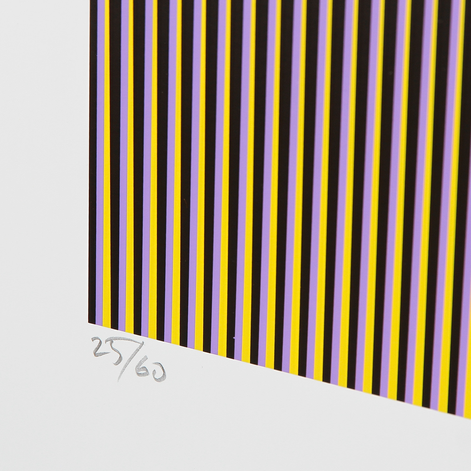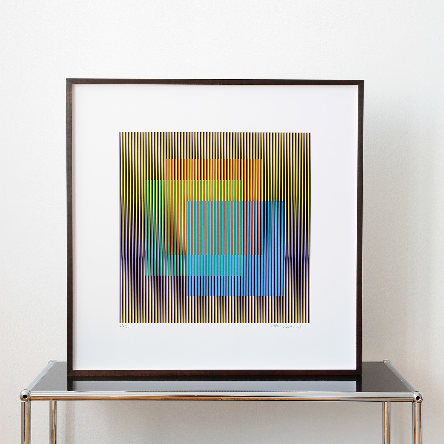 Carlos Cruz-Diez Couleur Additive 2, 2008 Material Serigrafie Edition Size 60 Measurement 40 x 40 cm auf 60 x 60 cm Auflage 60 Auf der Vorderseite signiert, datiert und nummeriert Details about the frame Handgefertigter, gewachster Ahorn-Holzrahmen, inkl. 10mm Distanzleiste und Museumsglas, Außenmaße: ca. 61,6 x 61,6 cm, inkl. rückseitiger Aufhängung The new and affordable way to buy contemporary art Strictly limited and signed art editions Limited stock From emerging talents to today’s most sought-after artists Easy and free sign-up to shop our weekly deals SIGN UP NOW Already have an account? Über den Künstler und die Edition „I am 94. I am a man of my time, I am not of the past.“ Das sagte Carlos Cruz-Diez (1923‒2019), Pionier der kinetischen, auf Beweglichkeit bzw. Bewegung beruhenden Kunst, noch im hohen Alter – und sein Schaffen zeugt davon. Schon in der Kunsthochschule fragte sich Cruz-Diez, der in der Folge einer der prominentesten lateinamerikanischen Künstler der jüngeren Moderne werden sollte, warum alle mit denselben Materialien arbeiteten. Er selbst wollte weg von der traditionellen Malerei. Während diese „eine Erinnerung“ repräsentierten, hoffte er darauf, in seinen Werken „die Gegenwart“ zu zeigen. Carlos Cruz-Diez feierte die Farbe und machte sich stets aufs Neue auf die Suche nach Entdeckungen. Seine Serie „Couleur Additive“ beruht auf dem Phänomen, dass sich durch Überlagerungen zweier Farben die Illusion einer dritten ergibt. Seine Kunst verändert sich mit der wechselnden Perspektive des Betrachters und rückt so tatsächlich den Moment ins Zentrum. Werke von Cruz-Diez befinden sich heute weltweit in wichtigen Museumssammlungen wie dem Museum of Modern Art (MoMA) in New York, der Tate Modern in London, dem Centre Pompidou in Paris, dem Wallraf-Richartz-Museum in Köln und der Pinakothek der Moderne in München. Latest Exhibitions (Selection) Bis Anfang Februar 2020 waren Werke von Carlos Cruz-Diez in der Ausstellung „Sur Moderno. Journeys of Abstraction“ im Museum of Modern Art (MoMA) in New York zu sehen. Für 2020 und 2021 sind Ausstellungen mit Arbeiten von ihm im Cleveland Museum of Art in Ohio, im Denver Art Museum sowie im Kunstmuseum Bern und dem Zentrum Paul Klee geplant: http://www.cruz-diez.com/exhibitions/upcoming/ Cruz-Diez gestaltete den Pavillon seines Heimatlandes Venezuela auf der XXXV. Biennale in Venedig im Jahr 1970. 1965 nahm er an der Schau „The Responsive Eye“ im MoMA in New York teil, neben Künstler*innen wie Enrico Castellani, Ellsworth Kelly und Gego – die Schau gilt als erste Blockbuster-Museumsausstellung überhaupt. Links of Interest (Selection) Webseite über Carlos Cruz-Diez und sein Werk Video-Porträt von Carlos Cruz-Diez (2017) Nachruf in „The Guardian“ (2019) Discover More Art Christiane Wöhler Möwenmädchen, 2013 Karl Otto Götz Silph, 1999 Carlos Cruz-Diez Couleur Additive 1, 2008