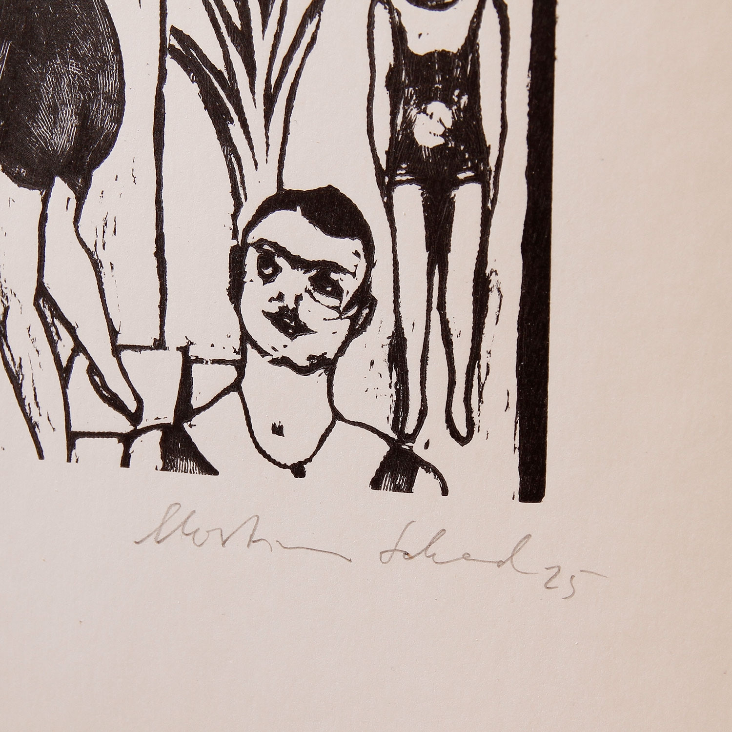 Christian Schad Varietéprobe, 1925 Material Holzschnitt auf Papier Edition Size 230 Measurement 24,5 x 15,5 cm 1925 (Platte) Reprint: 1975 Auflage 230 vorderseitig signiert und datiert Details about the frame Handgefertigter schwarz gebeizter und gewachster Ahorn-Holzrahmen, mit 10mm Distanzleiste, Außenmaße ca. 23 x 29,9 cm. Inkl. Museumsglas und rückseitiger Aufhängung The new and affordable way to buy contemporary art Strictly limited and signed art editions Limited stock From emerging talents to today’s most sought-after artists Easy and free sign-up to shop our weekly deals SIGN UP NOW Already have an account? Über die EditionChristian Schads Holzschnitt „Varietéprobe“ von 1925 entsteht in der wichtigsten Schaffensphase des Künstlers, einer Phase, in der er zum Stil der „Neuen Sachlichkeit“ und seiner ganz eigenen, von Kühle und Distanziertheit geprägten Bildsprache findet. In den 1920er Jahren florieren in den pulsierenden Metropolen, unter ihnen auch Berlin, die Theaterszene und das Varieté. „Varietéprobe“ kann als Zeugnis dieser besonderen Zeit angesehen werden. Schads Komposition ist unkonventionell, er reduziert das Gesehene auf einen Bildausschnitt: Die Figuren sind in Teilen nur fragmentiert wiedergegeben ‒ so ist am unteren Bildrand im Vordergrund lediglich der Kopf eines Varietéartisten zu sehen, während von oben ein Unterleib mit zwei Beinen in den Bildraum ragt. Hier ist keine Zeit zum Innehalten, hier wird für den großen Abend geprobt! Über den Künstler Christian Schad, 1894 in Miesbach/Oberbayern geboren, gehört zu den Hauptvertretern der „Neuen Sachlichkeit“. In seinen Arbeiten der 1920er Jahre untersucht er die neue soziale Wirklichkeit in der Weimarer Republik. Eines seiner Hauptwerke dieser Zeit, „Sonja“ (1928), das Porträt einer Berliner Sekretärin im schwarzen Chanel-Kostüm und mit Zigarettenspitze, gehört zur Sammlung der Neuen Nationalgalerie in der Hauptstadt. „Die apartesten, gepflegtesten und auch die schönsten Frauen, die mir bei meinen wechselnden Aufenthalten in Europa begegneten, waren die Berlinerinnen“, vermerkt Schad einmal. Zuvor, 1919, hat er, inspiriert von Dada und Surrealismus, die „Schadographie“ entwickelt: Ohne Verwendung einer Kamera belichtet er Papier und bildet Objekte darauf ab. Später wird er für sich die Symbolkraft von Bildern entdecken. Im Umfeld des „Magischen Realismus“ thematisiert er in seinem Werk nun Mythologie und Traumvisionen. 1982 stirbt der Künstler in Stuttgart. Die Stadt Aschaffenburg, wohin Schad 1943 zog, wird 2019 ein Museum für seinen Nachlass als ersten Bauabschnitt des neu geplanten „Museumsquartiers“ eröffnen. Latest Exhibitions (Selection) 2009, Gemeentemuseum, Den Haag 2009, Leopold Museum, Wien 2002, Museum der Moderne ‒ Rupertinum, Salzburg 2001, Städtische Galerie Wolfsburg, Wolfsburg Links of Interest (Selection) Baldige Neueröffnung des Christian Schad Museums, Aschaffenburg Video-Werkbesprechung „Sonja“, Neue Nationalgalerie, Berlin IBesprechung des Porträts „Sonja“ durch die Freunde der Nationalgalerie, Berlin Werke von Christian Schad bei artnet Discover More Art John Baldessari Hot Tub, 2016 Georg Karl Pfahler Ohne Titel (WVZ 139), 1975 Georg Karl Pfahler Ohne Titel (WVZ 146), 1975 Georg Karl Pfahler Ohne Titel (WVZ 168), 1975 Martin Assig Kleid, 2002
