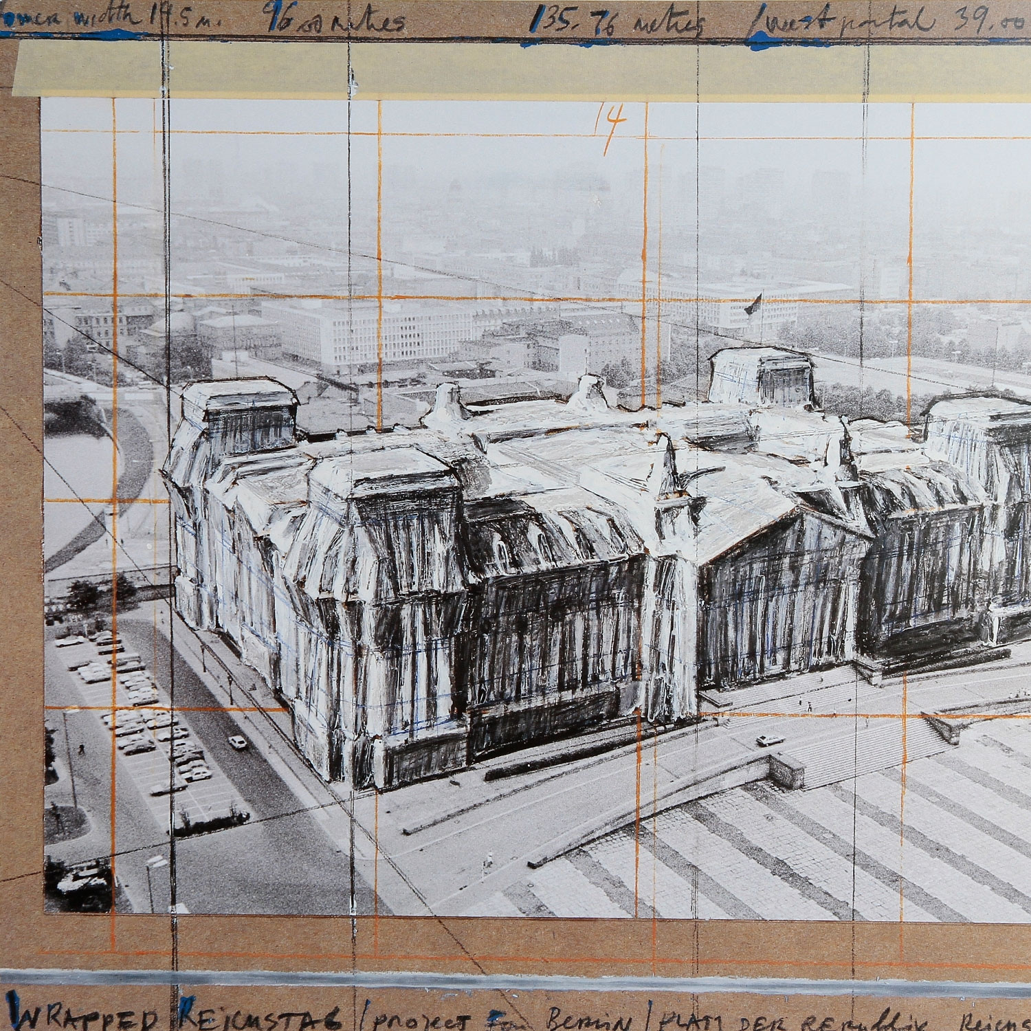 Die handsignierte Edition „Reichstag X“ zeigt die gewaltigen Ausmaße der Verhüllungsaktion ‒ die fließenden Stoffbahnen erscheinen in ihren schieren Abmessungen auch im Rückblick noch wie ein Wunder.