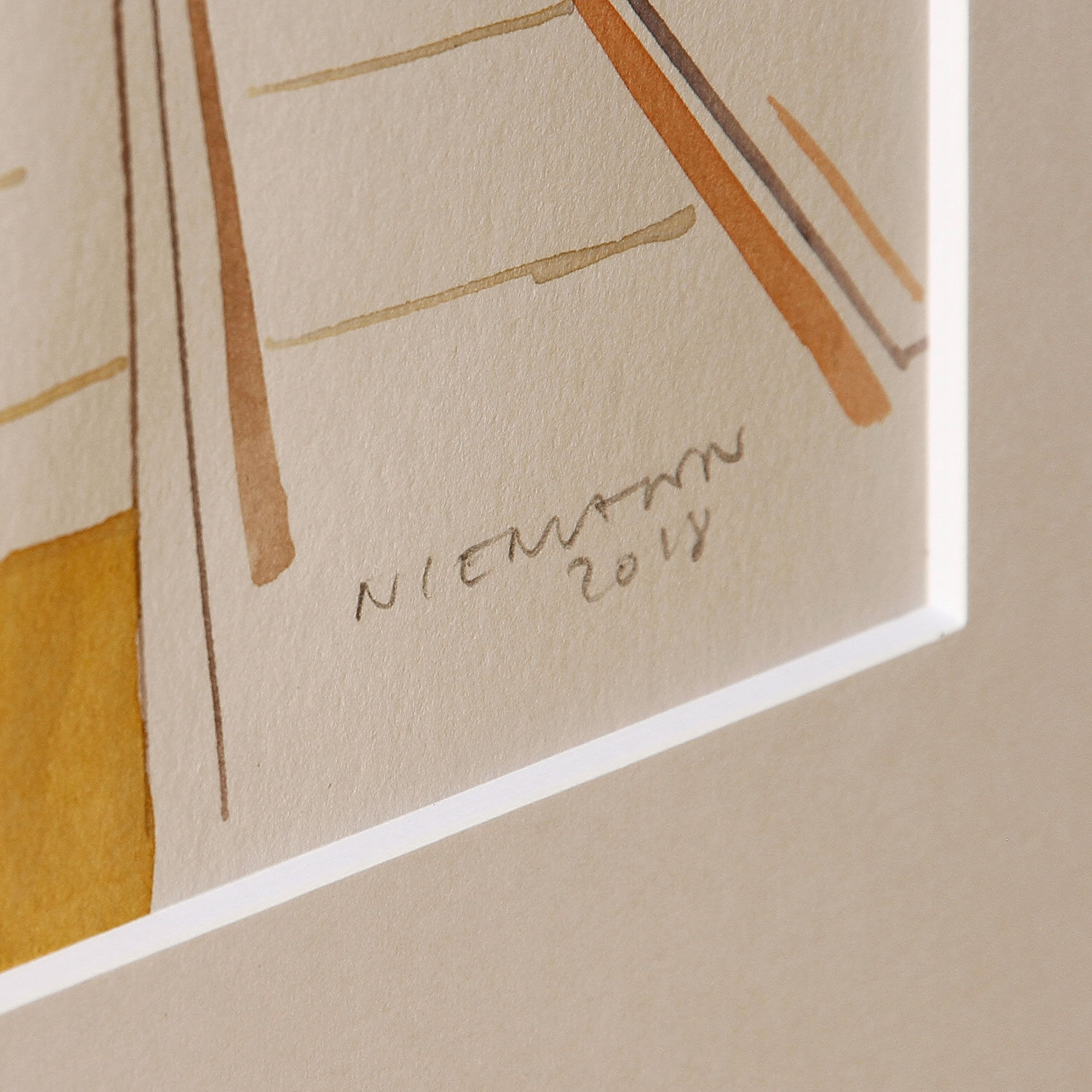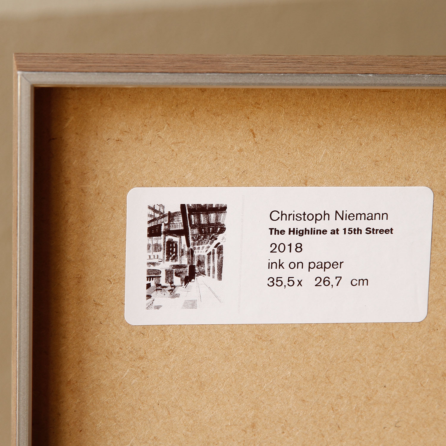 Christoph Niemann The Highline at 15th Street (Unikat, Tusche auf Papier), 2018 Material Tusche auf Papier Production Method handsigniert und datiert Edition Size 1 Measurement 35,5 x 26,7 cm UNIKAT Details about the frame Nielsen Alpha Aluminium Wechselrahmen mit Furnier in Wengé hell in 50 x 40 cm, inkl. Passepartout The new and affordable way to buy contemporary art Strictly limited and signed art editions Limited stock From emerging talents to today’s most sought-after artists Easy and free sign-up to shop our weekly deals SIGN UP NOW Already have an account? Über das Werk Christoph Niemanns Tusche-Arbeit „The Highline at 15th Street“ entstammt seiner New Yorker Bilderreihe – und zeigt die ehemalige Güterzugtrasse, die sich heute begrünt als Park durch die Metropole zieht. Genauso verdichtet wie einladend wirkt seine ehemalige Wahlheimat hier. Mit zielsicher gesetzten und der Kraft des Weißraums vertrauenden Pinselstrichen skizziert Niemann eine Großstadtszene, in der jeden Moment das pulsierende Leben New Yorks Einzug erhalten könnte. Über den Künstler Das Wort Kreativität muss für Menschen wie Christoph Niemann erfunden worden sein, schaut man auf die Fülle seiner Ideen. Die Arbeiten des in New York wie Berlin gefeierten Illustrators sind genauso schlicht wie genial: Wenn ein Mohnbrötchen in Niemann´s Zeichnungen zum Dreitagebart mutiert, Bananen zu Hinterflanken eines Pferdes oder Eddings zu gestiefelten Beinen werden, nicken und schmunzeln wir zustimmend. Aber selber drauf gekommen wären wir nie! Seit acht Jahren postet Niemann, der visuelle Geschichtenerzähler, in seinem Sonntags-Blog „Abstract Sunday“ - früher „Abstract City“ - in der New York Times seine erfindungsreichen und humorvollen alltäglichen Beobachtungen. „The New York Times Magazine“, „Wired“, „The New Yorker“, das Museum of Modern Art – seine renommierten New Yorker Auftraggeber beliefert der Illustrator Christoph Niemann auch noch nach seinem Umzug von der US-Metropole nach Berlin. Doch mittlerweile nimmt die freie künstlerische Arbeit einen immer größeren Stellenwert im Werk des deutschen Zeichners ein. 2010 in die Hall of Fame des Art Directors Club aufgenommen, hängen viele seiner Arbeiten mittlerweile in Museen, zuletzt im Museum für angewandte Kunst in Wien. Das Museum of Art and Design in Hamburg zeigte 2016 ebenfalls eine Soloschau. Latest Exhibitions (Selection) 2019 Schloss Bonndorf, Bonndorf 2019 Literaturhaus, München 2018/19 Deutsche Oper, Berlin 2018 ZieherSmith Gallery, New York 2017 Galerie Max Hetzler, Berlin 2017 Galerie Stihl, Waiblingen 2017 Galerie Stihl, Waiblingen 2017 Cartoon Museum, Basel 2017 Colette, Paris 2016 Museum for Art and Design (MKG) Hamburg 2015 Museum of Applied Arts (MAK) Vienna 2015 Galerie Max Hetzler Berlin 2014 Museum Für Konkrete Kunst Ingolstadt 2014 Mercator Institute, Berlin 2013 Galerie Max Hetzler, Berlin 2013 Galerie der Stadt Backnang, Backnang, Germany 2010 NLB Galerija, Ljubljana, Slovenia 2005 Gallery Nine, New York Times, NY 2000 Galerie Le Lys, Paris Links of Interest (Selection) Webseite von Christoph Niemann Die Mauer für den Wannsee Bahnhof Christoph Niemann im TED Talk Christoph Niemanns Reisen für National Geographic zum Nordpol, zum Mekong und nach Kambodscha Portfolio von Christoph Niemann bei The New Yorker Christoph Niemanns Blog „Abstract Sunday“ für die „New York Times“ Discover More Art Sebastian Nebe Bungalow (Unikat), 2019 Nadine Wölk Nightlife III. 11 (Unikat), 2019 Laura Bruce From the Blood Meridian Series "Snowblind Horses" (Unikat), 2019