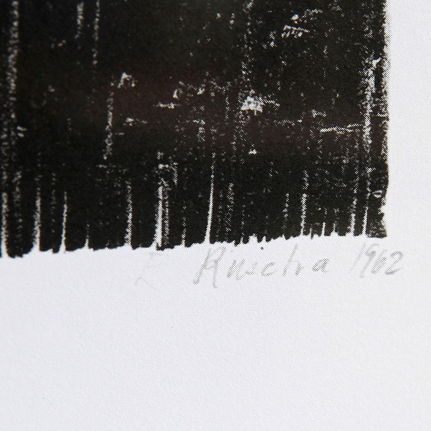 Ed Ruscha Metro Mattress #4, 2008 Material Ditone-Print Production Method Signed, numbered, dated on a separate Label Edition Size 1 Measurement 7.16 x 11.18 in (18,2 x 28,4 cm) The new and affordable way to buy contemporary art Strictly limited and signed art editions Limited stock From emerging talents to today’s most sought-after artists Easy and free sign-up to shop our weekly deals SIGN UP NOW Already have an account? About the Edition Ed Ruscha’s career-long exploration of horizontality has included compendia of the buildings of urban Los Angeles, word paintings, photo books, and prints running the full gamut of his readymade subjects, all of which highlight his admitted fascination with the language of landscape. The mattress is a particular kind of landscape, though; a decidedly horizontal object and one that supports both physically and psychically, engendering the production of those imaginary landscapes called dreams. In his series "Metro Mattresses", Ruscha has produced an intimate portrait of a certain kind of dream, now encountered as a discarded object tossed out onto the street, which Ruscha photographed and then translated to the flat two-dimensional plane. What type of landscape is this mattress set? A clue is given by the reversal of the usual order of things – box spring on top of mattress, bloody smears moving against the laws of gravity. Beneath the transparent fabric cover of the box spring, we see what looks like a picture frame, or a cross – both sights of imaginary projection. In Ruscha’s exacting image, who could blame us for believing that maybe there really is no difference between the two? About the Artist Ed Ruscha is a pioneer of American conceptual art who influenced artists like Bruce Nauman all the way to Lawrence Wiener. Born in 1937 in Omaha, Nebraska, Ruscha began his career as a graphic artist. Today, he is celebrated for his paintings, print designs, photography, films and artist’s books. In 1963, Ruscha released “Twentysix Gasoline Stations”, the first of 16 artist’s books. Adhering to a strict documentary style, Ruscha photographed American landscapes in black and white. The motif of the petrol station along Route 66 from Los Angeles to Oklahoma City is a continuous thread throughout Ruscha’s photobook, combining pop art with conceptual art. His early paintings are also attributed to the pop art movement. Ruscha lives and works in Los Angeles; since 1993, he has been represented by the renowned Gagosian Gallery in New York. In 2005, Ruscha represented the USA at the 51st Venice Biennale with an installation composed of 10 different paintings. Latest Exhibitions (Selection) 2018, Ed Ruscha: Double Americanisms, Secession, Vienna 2018, Ed Ruscha: Gumbo of Gravel. Lora Reynolds Gallery, Austin / Texas 2018, Ed Ruscha: Archaeology and Romance. Harry Ransom Center, The University of Texas at Austin, Austin. 2018, Ed Ruscha – VERY. KODE Art Museums and Composer Homes, Bergen, Norwegen, Louisiana Museum of Modern Art, Humlebæk, Denmark 2018, Word/Play: Prints, Photographs, and Paintings by Ed Ruscha. Joslyn Art Museum, Omaha 2018, Ed Ruscha: Course of Empire, The National Gallery of Art, London. Links of Interest (Selection) artist website Ed Ruscha at Gagosian Gallery, New York Interview with Ed Ruscha „The Guardian‟ Discover More Art Jenny Holzer Selection from Living 1980–82, 1999 Lawrence Weiner A & The as an A in a Whirl, 2008 Joseph Beuys Surrender II, 1977 Jack Pierson Ohne Titel, 2008