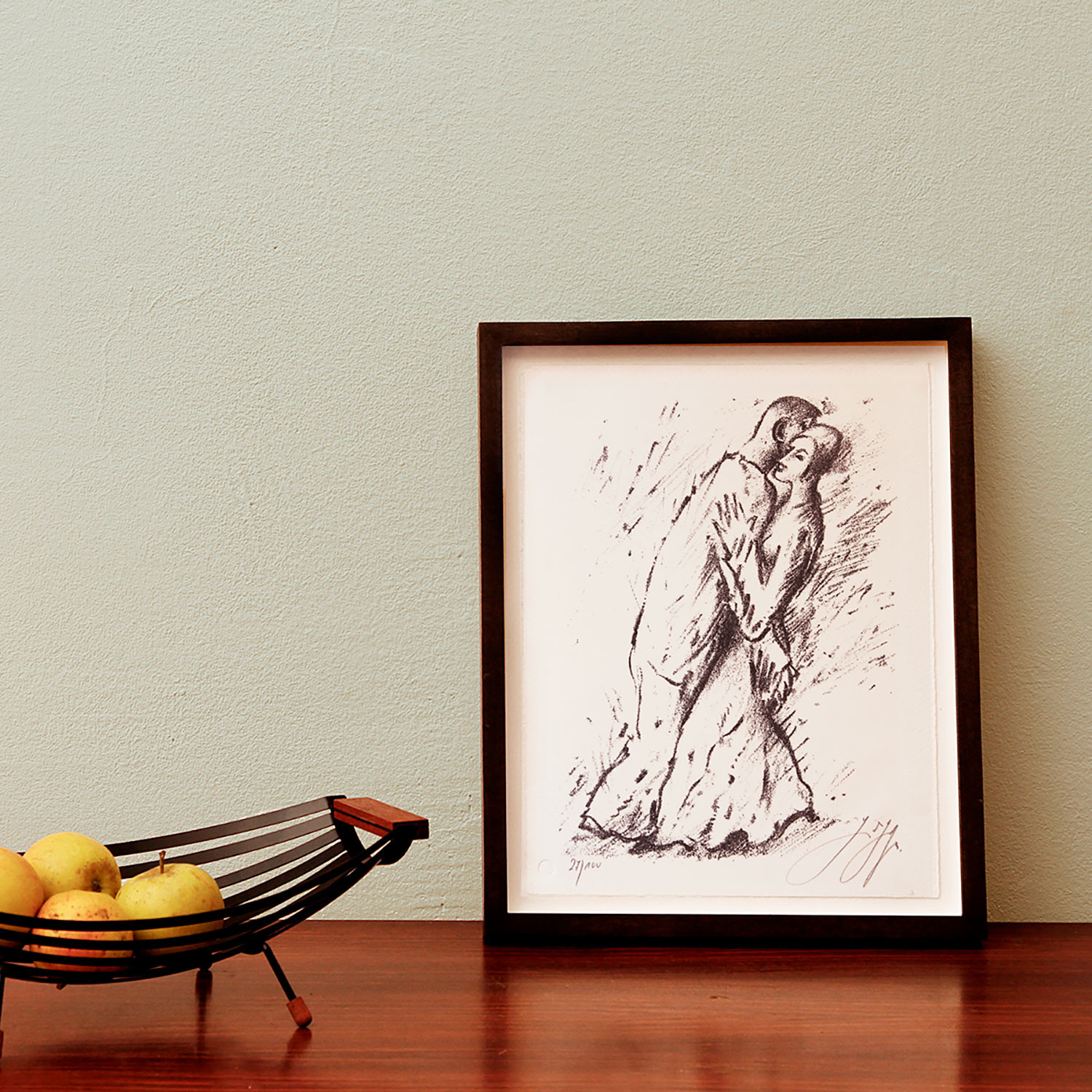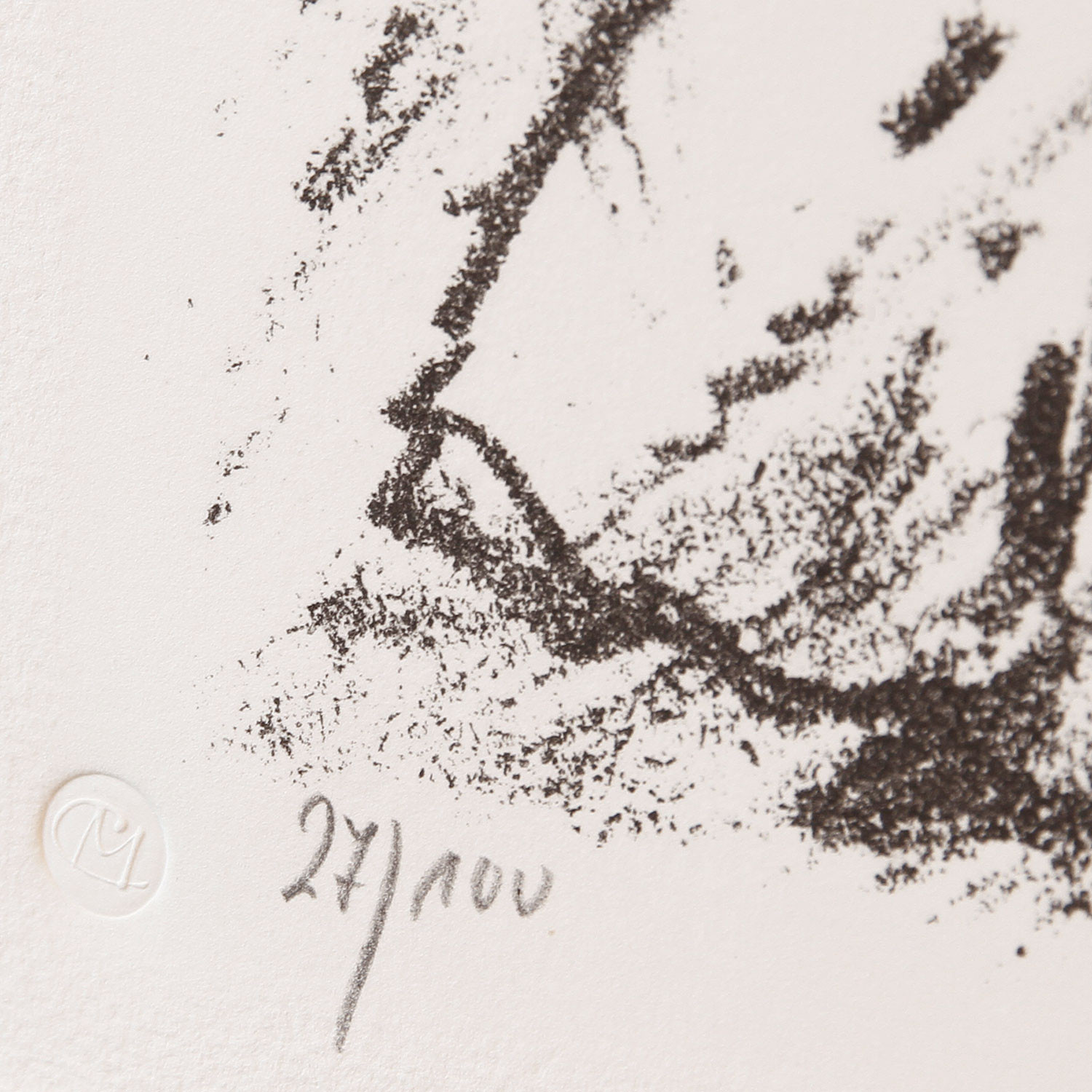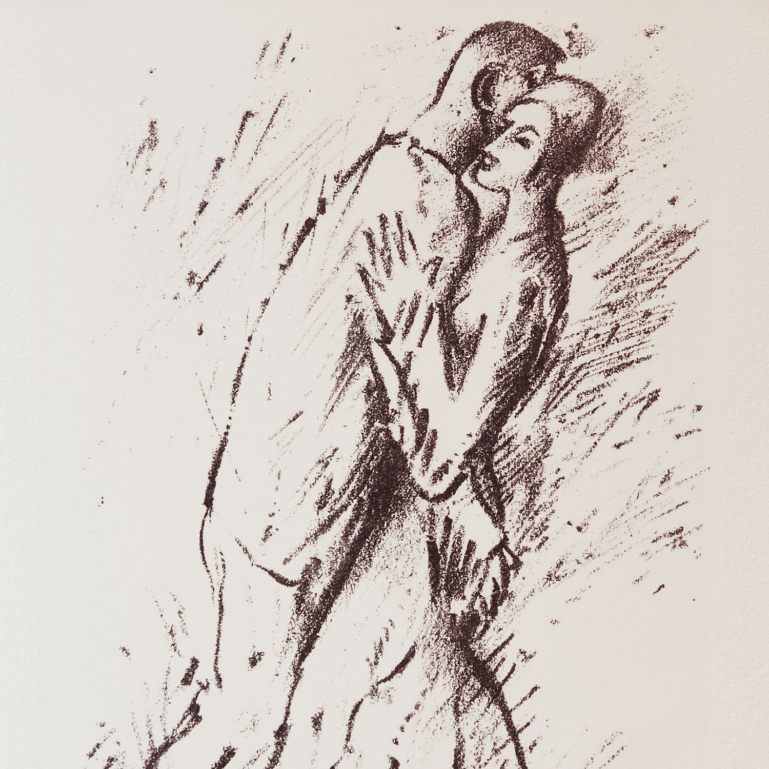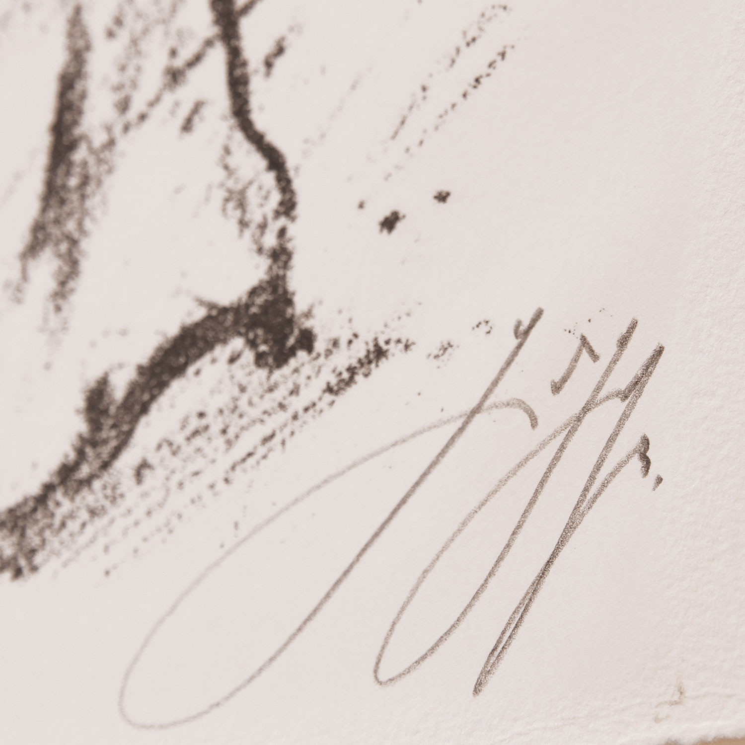 Günter Grass Letzte Tänze II (Rag und Blues – zwischendurch Damenwahl), 2003 Material Lithografie inkl. Buch der Erstausgabe Production Method Vorzugsausgabe, signiert und nummeriert Edition Size 100 Measurement 29 x 23 cm Details about the frame Handgefertigter edler gewachster Ahornrahmen, 10mm Distanzleiste. Außenmaße ca. 26,6 x 33,6 cm. Inkl. Rückseitiger Hängeleiste, staubdicht verschlossen. The new and affordable way to buy contemporary art Strictly limited and signed art editions Limited stock From emerging talents to today’s most sought-after artists Easy and free sign-up to shop our weekly deals SIGN UP NOW Already have an account? Über die EditionDass ihm noch zwölf Jahre bleiben würden, dass hätte Günter Grass bei der Arbeit an „Letzte Tänze“ im Jahr 2003 wahrscheinlich nicht gedacht. In Gedichten und Zeichnungen umkreist er dort seine Leidenschaft: den Tanz. Sein fast alterslos wirkendes tanzendes Paar scheint vor Energie, Lust und Körperspannung zu vibrieren – Rücken an Rücken. Die Lithografie „Rag und Blues – zwischendurch Damenwahl“ erzählt von fiebrig durchtanzten Nächten in der Kriegs- und Nachkriegszeit. Und Grass beschönigt nichts: „Weil Krieg war und Männer / in Stiefeln weit ostwärts / so daß sich die Mädchen / aus Mangel und Tanzlust / uns Jungs von der Bank weg / mit Fingerschnalz wegholten“, heißt es im aufwendig gestalteten, von ihm signierten Steidl-Band. Über den KünstlerFür den Schaffensdrang und das Ausdrucksvermögen von Günter Grass reichte eine Kunst allein nicht aus. Sein literarisches Können wurde flankiert von Arbeiten in den Medien der Skulptur, Zeichnung, Radierung und Lithografie. Nach einer Steinmetzlehre studierte der Nobelpreisträger von 1999 Grafik und Bildhauerei. Sein Verleger Gerhard Steidl wurde diesem prallen Werk auch in Buchform gerecht. Zwei Jahrzehnte arbeitete der gelernte Drucker mit Grass zusammen. „Solange wir beide mit dem Buch beschäftigt sind, gehört es uns ganz allein“, sagte der ihm einmal. Mit dünner Radiernadel ritzte Grass seine Figuren und titelgebenden Tiere wie die Rättin, den Butt, den Krebs oder die Unke ins Metall. Schon seine erste Veröffentlichung, „Die Vorzüge der Windhühner“ von 1956, enthielt Gedichte, Zeichnungen und Prosa. „Und gleichfalls sind jene Federzeichnungen für jene englische Broschur, die unter dem Titel ‚Die Vorzüge der Windhühner‘ mein erstes Buch werden sollte, kein illustrierendes Beiwerk, sondern als grafische Fortsetzung und Vorwegnahme der Gedichte zu sehen", so der Künstler. Grass, der 2015 im Alter von 87 Jahren starb, hat neben seiner preisgekrönten Prosa ein bedeutendes bildnerisches und druckgrafisches Werk hinterlassen. Latest Exhibitions (Selection) Aktuelle Termine im Günter Grass-Haus in Lübeck Im Steidl-Verlag erschienene Werke von Günter Grass Links of Interest (Selection) Günter Grass beim Steidl Verlag Marcel Reich-Ranicki über „Letzte Tänze“ von Günter Grass Rezension von Ina Hartwig in der „Frankfurter Rundschau“ Rezension in „der Freitag“ von Dorothea von Törne Ausstellung im Haus am Lützowplatz in Berlin Original-Lithografien beim Kunsthaus Lübeck Discover More Art Günter Grass Letzte Tänze I (Rag und Blues – zwischendurch Damenwahl), 2003 Günter Fruhtrunk Konkrete Komposition, 1977 John Baldessari Hot Tub, 2016