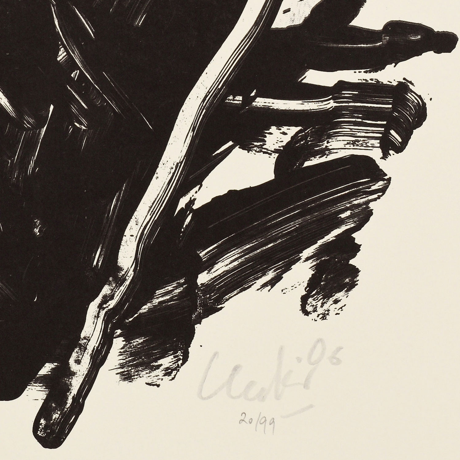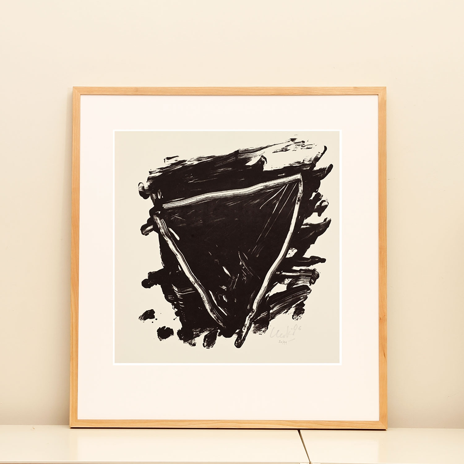 Günther Uecker Hiob Seite 40, 1996 Material Siebdruck Edition Size 99 Measurement 52 x 50 cm Vom Künstler signiert und datiert, zusätzlich nummeriert Details about the frame Handgefertigter gewachster Kirschbaum-Holzrahmen, mit Passepartout in altweiß. Inkl. rückseitiger Hängeleiste, staubdicht verschlossen. The new and affordable way to buy contemporary art Strictly limited and signed art editions Limited stock From emerging talents to today’s most sought-after artists Easy and free sign-up to shop our weekly deals SIGN UP NOW Already have an account? Über die EditionDas Buch Hiob aus dem Alten Testament gehört zur Weltliteratur. Kaum einem anderen Künstler ist eine so eindringliche Auseinandersetzung mit diesem Stoff, in dem es um die Frage nach der Sinnhaftigkeit des Leidens im Glauben geht, gelungen wie Uecker. Seine künstlerische Interpretation des alttestamentlichen Textes gilt als eine seiner wichtigsten Mappenarbeiten überhaupt. Sie umfasst 47 Grafiken, von der jede aus einem umklappbaren Doppelbogen mit Motiv und entsprechendem Text besteht. Ein Exemplar dieser beeindruckenden „Hiob“-Mappe befindet sich in der Kunstsammlung der BRD und wird im Berliner Reichstag präsentiert. Wir schätzen uns glücklich, Ihnen heute zwei Grafiken aus Ueckers Meisterwerk von 1996 auf artflash zeigen zu können! Über den Künstler Schon als Kunststudent machte Günther Uecker (geboren 1939 in der Nähe von Wustrow) die Entdeckung, dass der Bleistift nicht nur als Zeichengerät, sondern auch anders ausdrucksfähig ist – wenn man das Papier mit ihm durchsticht. „Das war Realismus für mich. Die Emotionen sind in der Hand, die Hand ist das Werkzeug, und der Arbeitsplatz ist Kunst“, erklärte er später. Da war es zu Hammer und Nagel nicht mehr weit, mit denen Uecker seither Bilder und Objekte erarbeitet, für welche er weltweit gefeiert wird. Uecker zählt zu den wichtigsten Nachkriegskünstlern Deutschlands überhaupt. 1961 wurde er Mitglied der von Heinz Mack und Otto Piene kurz zuvor gegründeten Gruppe ZERO und wandte sich daraufhin verstärkt der Lichtkunst zu. Wenige Jahre später, 1970, war er neben Karl-Georg Pfahler, Mack und Thomas Lenk deutscher Vertreter auf der Biennale in Venedig. Seine Hauptwerke, wie etwa seine genagelten Reliefs, werden heute am Kunstmarkt auf eine halbe Million Euro oder mehr taxiert. 2015 ehrte die Kunstsammlung Nordrhein-Westfalen in Düsseldorf den Aktionskünstler, Bildhauer, Bühnenbildner und Poeten mit einer umfangreichen Retrospektive. Links of Interest (Selection) Die „FAZ“ über Günther Ueckers Ausstellung im K20 in Düsseldorf (2015) Interview mit Günther Uecker in „Die Welt“ Biografie des Künstlers in „Who's who ‒ The People Lexicon“ Discover More Art Günter Fruhtrunk Konkrete Komposition, 1977 John Baldessari Hot Tub, 2016 Günter Grass Letzte Tänze II (Rag und Blues – zwischendurch Damenwahl), 2003 Günther Uecker Hiob Seite 25, 1996