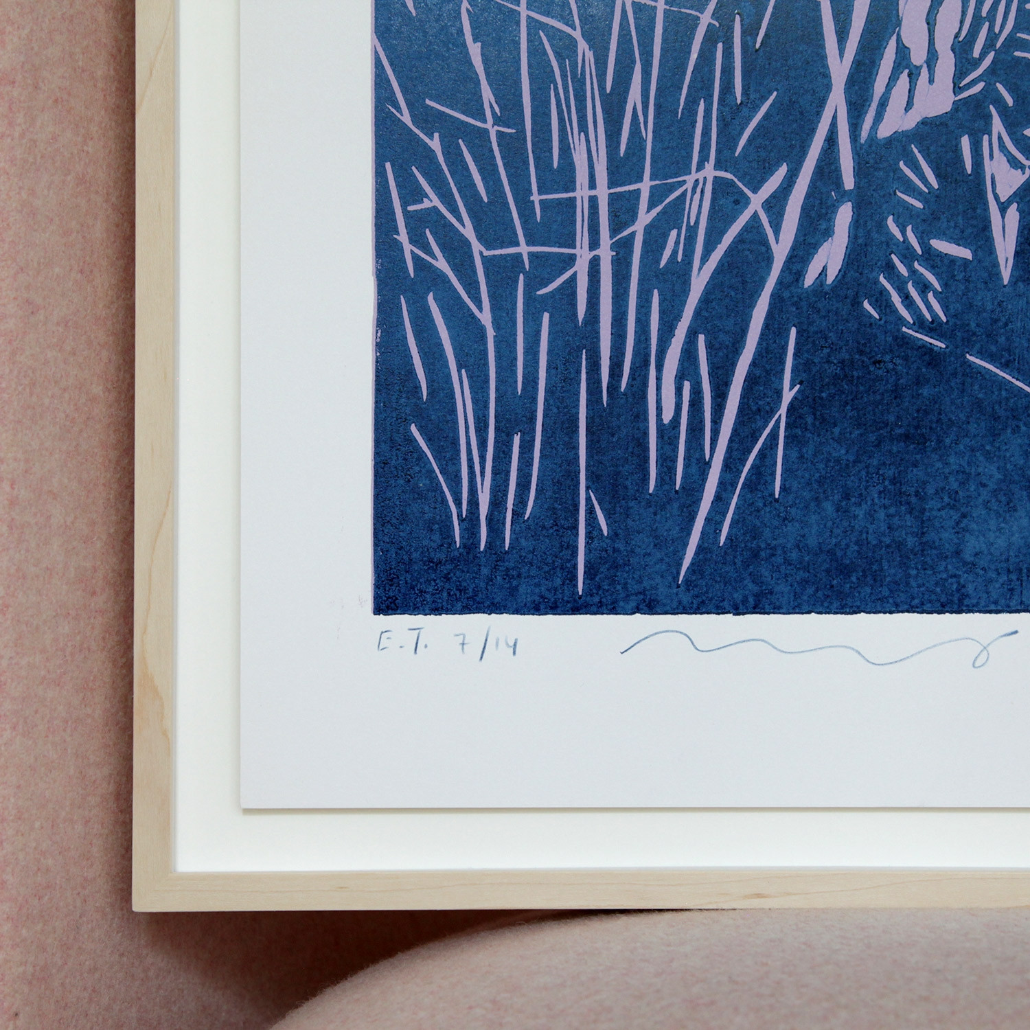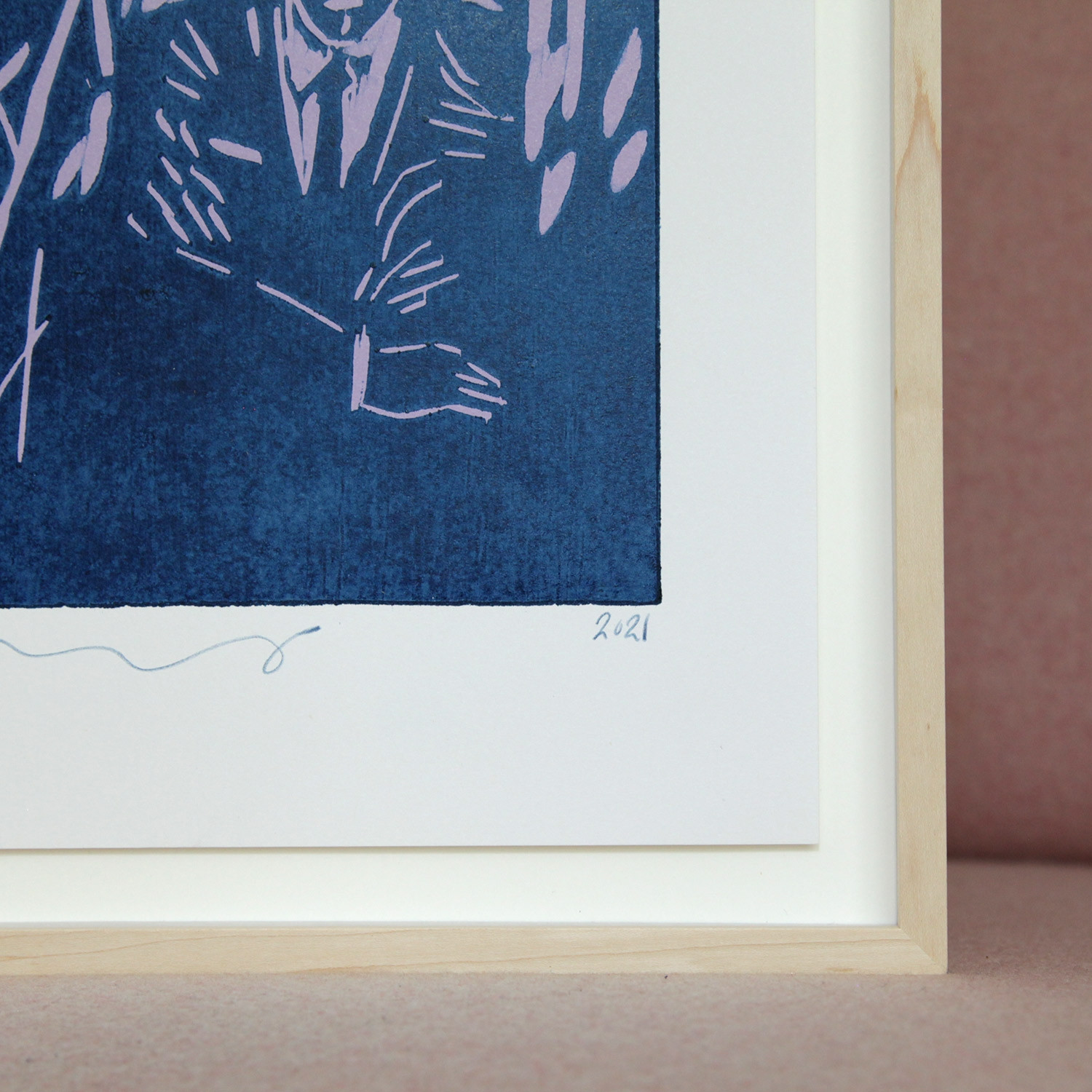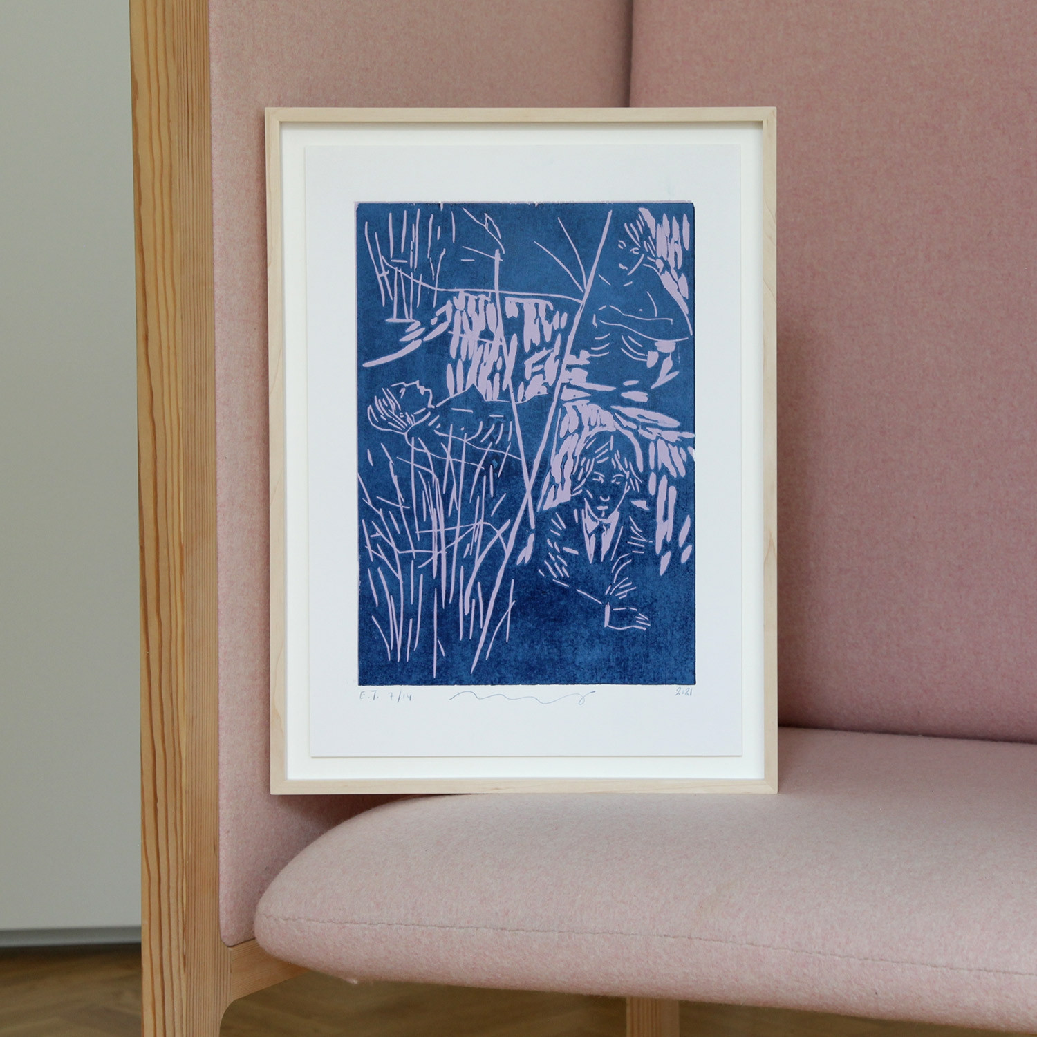 Jasper Sebastian Stürup Ohne Titel, 2021 Material Holzschnitt Edition Size 14 Measurement Druckplatte 35,5 x 25 cm, Papiermaß 45 x 32 cm Auflage 14 + 2 AP + 2 HP signiert + nummeriert Details about the frame Handgefertigter Ahorn-Holzrahmen, inkl. 8mm Distanzleiste, Blatt ist hochgestellt montiert, Museumsglas Außenmaße: ca. 45,0 x 32,0 cm, mit rückseitiger Aufhängung. The new and affordable way to buy contemporary art Strictly limited and signed art editions Limited stock From emerging talents to today’s most sought-after artists Easy and free sign-up to shop our weekly deals SIGN UP NOW Already have an account? Über die Edition Zwei klassische Sujets kommen in der Holzschnitt-Edition von Jasper Sebastian Stürup zusammen: das Porträt und die Naturstudie. Zu sehen sind gleich drei Figuren, über- und nebeneinander angeordnet, jede in einer Welt für sich, und doch umgibt sie derselbe Umraum, geprägt von Pflanzen und vielleicht Wasser. „I like the roughness of the lines when working with wood and linoleum“, sagt Stürup. Hier heben sich die Linien markant und hell vom tiefblauen Hintergrund ab. Viel Rhythmus steckt in der Komposition dieses Werkes, das gleichermaßen von der Vereinzelung wie von den Möglichkeiten einer Verbundenheit zu erzählen scheint. Über den Künstler „The core of what I do is drawing.“ Das Zeichnen bildet das Herzstück der Werke von Jasper Sebastian Stürup, dies gilt neben den eigentlichen Zeichnungen ebenso für seine Malerei, seine skulpturalen Arbeiten wie für seine Druckgrafiken. Der 1969 geborene dänische Künstler begann bereits in seiner Kindheit zu zeichnen – und hörte nie mehr damit auf. Es geht ihm um die einfache, auf das Wesentliche reduzierte Darstellung, den essenziellen Strich. „Da sind die solistischen Linien, linearen Bögen und Linienverdichtungen, die das Handschriftliche in ästhetische Energie übersetzen“, so beschreibt Christoph Tannert vom Berliner Künstlerhaus Bethanien Stürups stilistische Besonderheit. Stürup studierte Bildende Kunst an der Royal Danish Academy of Fine Art in Kopenhagen sowie an der Jutland Academy of Fine Arts in Aarhus und stellt international aus. Latest Exhibitions (Selection) Im kommenden Jahr sind Werke des Künstlers in der Doppelausstellung „Jasper Sebastian Stürup und Per Mølgaard“ im JANUS ‒ Vestjyllands Kunstmuseum in Tistrup (DK) zu sehen (23.4.‒29.5.2022). Soloausstellungen von Stürup fanden im laufenden Jahr 2021 u.a. unter dem Titel „Glas Måne“ in der Kunsthal Thy in Østerild und 2020 unter dem Titel „Fuldmåne Dage“ im zur Galerie Bo Bjerggaard gehörenden Shop EKELY in Kopenhagen statt. Links of Interest (Selection) Website von Jasper Sebastian Stürup Jasper Sebastian Stürup auf Instagram Christoph Tannert vom Künstlerhaus Bethanien, Berlin, über Jasper Sebastian Stürup Discover More Art Olaf Hajek Golden Tear, 2020 Martin Parr Glenbeigh Races, County Kerry, 1983 , 2021 Thomas Struth Wall Detail, James Simon Galerie, Berlin 2019, 2019