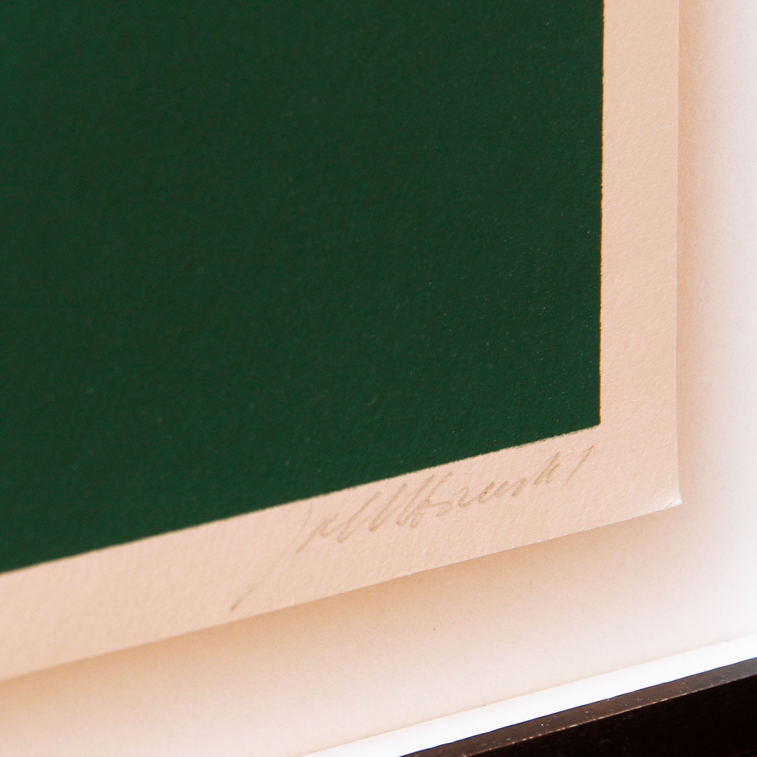 Joachim Albrecht Ohne Titel, 1966 Material Siebdruck auf Karton Production Method vorderseitig handsigniert in Bleistift Eine unnumerierte Auflage aus einer Edition von 230 Exemplaren Edition Size 230 Measurement 28 x 28 cm geringfügige Alterungsspuren Details about the frame Handgefertigter bothor gewachster Ahorn-Holzrahmen, mit 10mm Distanzleiste, Außenmaße ca. 33,4 x 33,4 cm. Inkl. rückseitiger Hängeleiste, staubdicht verschlossen. The new and affordable way to buy contemporary art Strictly limited and signed art editions Limited stock From emerging talents to today’s most sought-after artists Easy and free sign-up to shop our weekly deals SIGN UP NOW Already have an account? Über die Edition „Es gibt wohl inmitten der Langeweile wenig Langweiligeres als die krampfhafte Bemühung ,fortschrittlicher‘ Kreise um den verharmlosten und salonfähig zurechtgestutzten Avantgardismus. Neben den Ahnungslosen rasen die Ewig-Verspäteten von Vernissage zu Konzert und bedienen sich aller Hilfsmittel zur Beseitigung der Verdauungsbeschwerden beim vorsichtigen Genießen der ‚modernen‘ Kunst“ ‒ so beginnt das 1958 von 30 Künstlern und Intellektuellen unterschriebene „Manifest gegen den Avantgardismus“. Treibende Kraft dahinter ist der aus Ungarn stammende Basler Kunsthändler, Sammler und Psychoanalytiker Carlo Laszlo. Es ist bezeichnend, dass es auch Laszlo ist, der nur zwei Jahre später und in Fortsetzung dann noch einmal 1965 und 1977 ein Sammelportfolio ediert, das unter dem Titel „La Lune en Rodage“ insgesamt 180 Kunstwerke führender Künstler der europäischen Avantgarde zwischen den 1920er und den 1970er Jahren präsentiert. Die heute hier vorgestellten Arbeiten sind eine Auswahl aus den drei Ausgaben. Visuell eindrucksvoll erinnern sie an die Aufbruchstimmung und den Willen zur Erneuerung jener Jahrzehnte. Über den Künstler Joachim Albrecht (1913‒1997) war ein wichtiger Vertreter der konstruktiven Kunst. Unter dem Einfluss von Victor Vasarely und Auguste Herbin entwickelte er in den frühen 1960er Jahren seinen Stil, der die Fläche als eigenständigen Raum versteht. Der Siebdruck ohne Titel aus dem Jahr 1977 ist ein schönes Beispiel für Albrechts souveränen Umgang mit der Fläche: In einem geometrischen Spiel aus Dunkelgrün und Schwarz entsteht der Eindruck eines dreidimensionalen Werkes. Links of Interest (Selection) Offizieller Nachlass von Joachim Albrecht Discover More Art Philip Grözinger Calamity, 2017 Christian Schad Varietéprobe, 1925 Marcello Morandini Ohne Titel, 1977 Andreas Christen Ohne Titel, 1966 Getulio Alviani Ohne Titel, 1977 Augustin Tschinkel Personnage, 1934 Gerd Arntz Bespiegelungen II, 1930