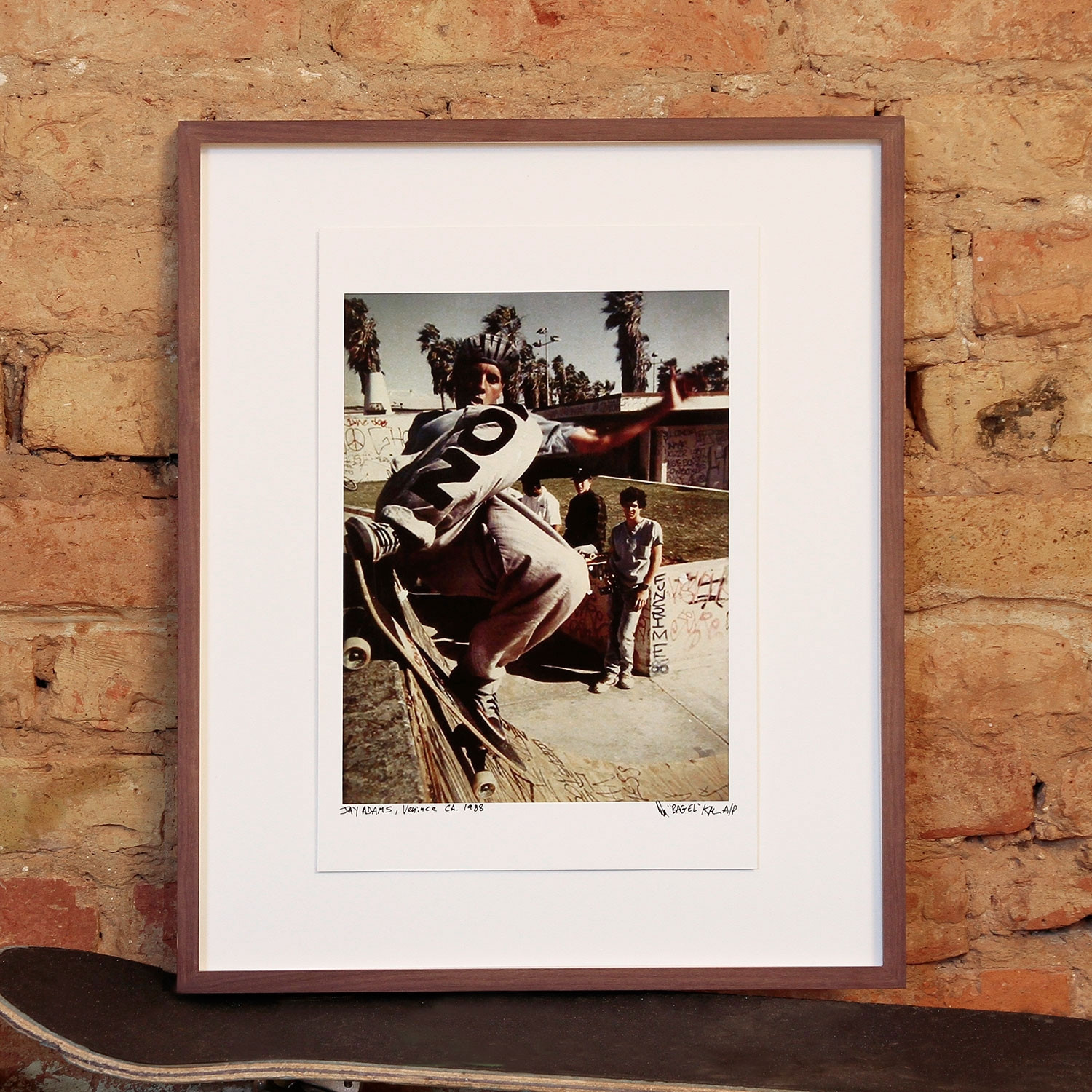 Josh Klassman Jay Adams (RIP) Venice Hat, 1988, 1988/2019 Material Fotografie/ Fine Art Print auf Hahnemühle Ultrasmooth Production Method auf einem separaten Sticker betitelt, signiert und nummeriert (abweichend von der Abbildung!) Edition Size 12 Measurement Blattmaß: ca 37 x 26 cm Printmaß: ca 30 x 23 cm Details about the frame Handgefertigter Nussbaum dunkler Holzrahmen, Fine Art Print erhöht auf säurefreiem Papier montiert, Außenmaße ca. 47 x 39 cm. Inkl. rückseitiger Hängeleiste, staubdicht verschlossen. The new and affordable way to buy contemporary art Strictly limited and signed art editions Limited stock From emerging talents to today’s most sought-after artists Easy and free sign-up to shop our weekly deals SIGN UP NOW Already have an account? Über die Edition Jay Adams war eine Legende auf dem Board: Mit seinem außergewöhnlichen Surf- und Skatestyle und seiner unangepassten, dennoch ‚gentlemanesken‘ Art ist er zu einer Symbolfigur der Skateboard-Kultur geworden. Es ist das Jahr 1975, ein ungewöhnlich heißer Sommer und die Geburtsstunde des Pool Riding: Adams, damals 15 Jahre alt, nimmt mit den Freunden Stacy Peralta und Tony Alva sowie einigen anderen als Zephyr Skate Team (später als Z-Boys bekannt) an einem Skatewettbewerb im kalifornischen Del Mar teil. Ihr Freestyle sorgt für Aufregung, denn er hat so gar nichts mit dem zu dieser Zeit vorherrschenden Skatestil zu tun. Stattdessen nutzen die Z-Boys leer stehende Swimmingpools (aus denen später die Halfpipes werden) und entwickeln hier ihren ganz neuen Stil, der weltweit Skater aller Generationen beeinflussen wird. Josh Klassman, ein enger Freund und Weggefährte von Adams, ebenfalls Surfer und Skater, hat in den späten 1980er Jahren Jay in jenem Moment fotografisch festgehalten, als dieser in der Halfpipe am Venice Pavillon in lässiger Pose einen „Layback Grind“ vollführt. Im August 2014 ist Adams in Mexiko bei einem Surfunfall ums Leben gekommen – die Skater-Community hat damit einen ihrer ganz großen Pioniere verloren. Über den Künstler Josh Klassman ist Insider, Surfer, Skater ‒ und Fotograf. Er wuchs in Venice, dem westlichen Stadtteil von Los Angeles, auf. Der Venice Pavilion war ab den 70er Jahren nicht nur legendärer Skatepark, sondern auch ein gefährliches Pflaster mit täglichen Gang-Shootings. Hier verbrachte Klassman seine Jugend und dokumentierte mit seiner Nikon FM2 die Skate- und Surfszene der 1980er und 1990er Jahre. „My photos are an insider’s perspective, I was a part of all you see, it was my everyday life.“ Klassmans Fotoarchiv aus analogen Schwarz-Weiß-Bildern versammelt heute wertvolle Momentaufnahmen. Sie dokumentieren eine Zeit, in der aus Pionieren der Skateszene wie beispielsweise Jay Adams die ersten Profiskater wurden. Latest Exhibitions (Selection) Josh Klassmans Fotos auf Instagram: https://www.instagram.com/jbk_photos/?hl=en Links of Interest (Selection) Website des Künstlers Josh Klassmans Fotos auf Instagram Ein Nachruf auf Jay Adams Interview mit Jay Adams im Jahr 2001 Nachruf auf Jay Adams in der New York Times Discover More Art Lars-Gunnar Nordström Composition, 1987 Thomas Prochnow Der Zweite öffentliche Raum (Vitamin), 2015/2020