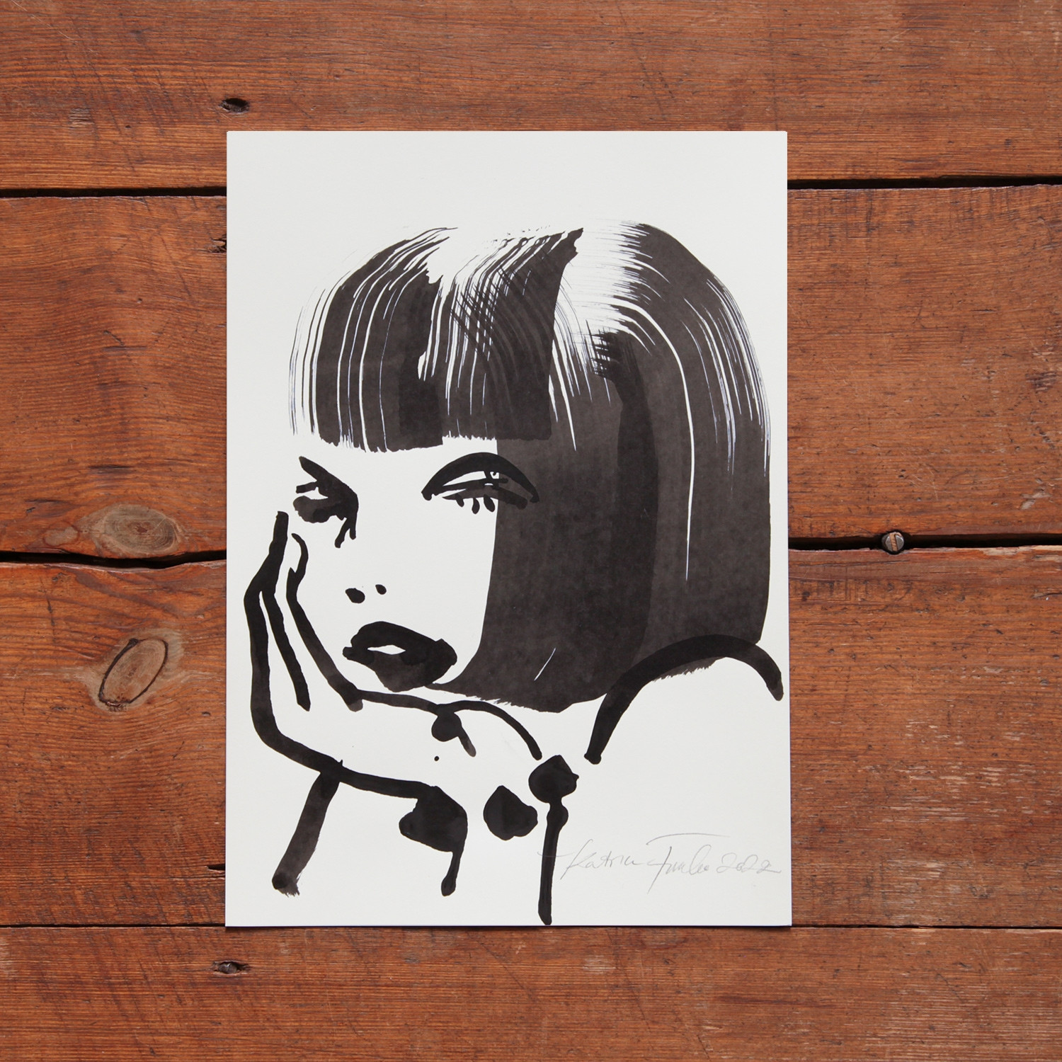 Katrin Funcke The Louise, 2022 Material Tusche auf Papier Edition Size 1 Measurement 29,7 x 21 cm Unikat signiert und datiert Details about the frame Handgefertigter schwarz lasierter und gewachster Ahorn-Holzrahmen, ca. 34,9 x 26,2 cm, inkl. Distanzleiste, das Werk ist hochgestellt montiert, inkl. Museumsglas und rückseitiger Aufhängung The new and affordable way to buy contemporary art Strictly limited and signed art editions Limited stock From emerging talents to today’s most sought-after artists Easy and free sign-up to shop our weekly deals SIGN UP NOW Already have an account? Über die Künstlerin und das Werk Menschen sind das Lieblingsmotiv der Künstlerin und Illustratorin Katrin Funcke (*1970 in Bielefeld). In ihrer signierten Unikat-Porträtserie aus den Jahren 2022/23 verleiht sie den von ihr in Tusche auf Papier skizzierten Frauen liebevolle Titel: „The Bouffant“ trägt die berühmte Jackie-Kennedy-Frisur, „The Parted“ akkuraten Mittelscheitel, „The Stripey“ ein Streifenshirt. Aber es sind nicht nur diese offensichtlichen, äußeren Merkmale, die Funcke hier einfängt. Auch Haltung, Pose, Gesichtsausdruck und Accessoires fixiert sie mit wenigen Strichen – und schafft somit überzeugende Charakterstudien, die vor Lebendigkeit und Coolness nur so sprühen. „Expressiv, rau und elegant. Ich bin sehr glücklich, wenn mir das alles auf einmal gelingt“, so beschreibt Funcke ihr selbst gestecktes Ziel. Bei den Tusche-Köpfen gelingt ihr das, so scheint es zumindest, mit großer Leichtigkeit ‒ auch wenn sie selbst verrät: „Alles, was locker aussieht, ist harte Arbeit.“ Das mag man ihr kaum glauben. Katrin Funcke wurde mehrfach ausgezeichnet, u.a. mit einer Art Director’s Club-Goldmedaille, dem Künstlerinnenpreis des Landes Nordrhein-Westfalen und dem 4. Fashion Illustration and Drawing (FIDA) Award. Sie stellt in zahlreichen Institutionen und Galerien in Deutschland aus. Latest Exhibitions (Selection) „ZU MENSCH – Skizzen und Blicke zurück auf Herbert Grönemeyers Album ‚Mensch‘“ mit Illustrationen von Katrin Funcke ist 2022 im Verlag Antje Kunstmann erschienen. Funcke gehörte zudem 2021 zu den Gewinner*innen des 4. Fashion Illustration and Drawing (FIDA) Award. Drei Jahre zuvor, 2018, zeigte die Galerie Mitte in Bremen in der Ausstellung „Paula ‒ Requiem für eine Freundin“ Werke von Funcke und ihrer Künstler*innengruppe „Bettine“. Links of Interest (Selection) Webseite von Katrin Funcke Katrin Funcke bei Art Act Discover More Art Katrin Funcke The Silent, 2022 Katrin Funcke The Long Bob, 2022 Katrin Funcke The Lunettes, 2022 Katrin Funcke The Shage, 2022 Katrin Funcke The Stripey, 2022 Katrin Funcke The Dotty, 2022