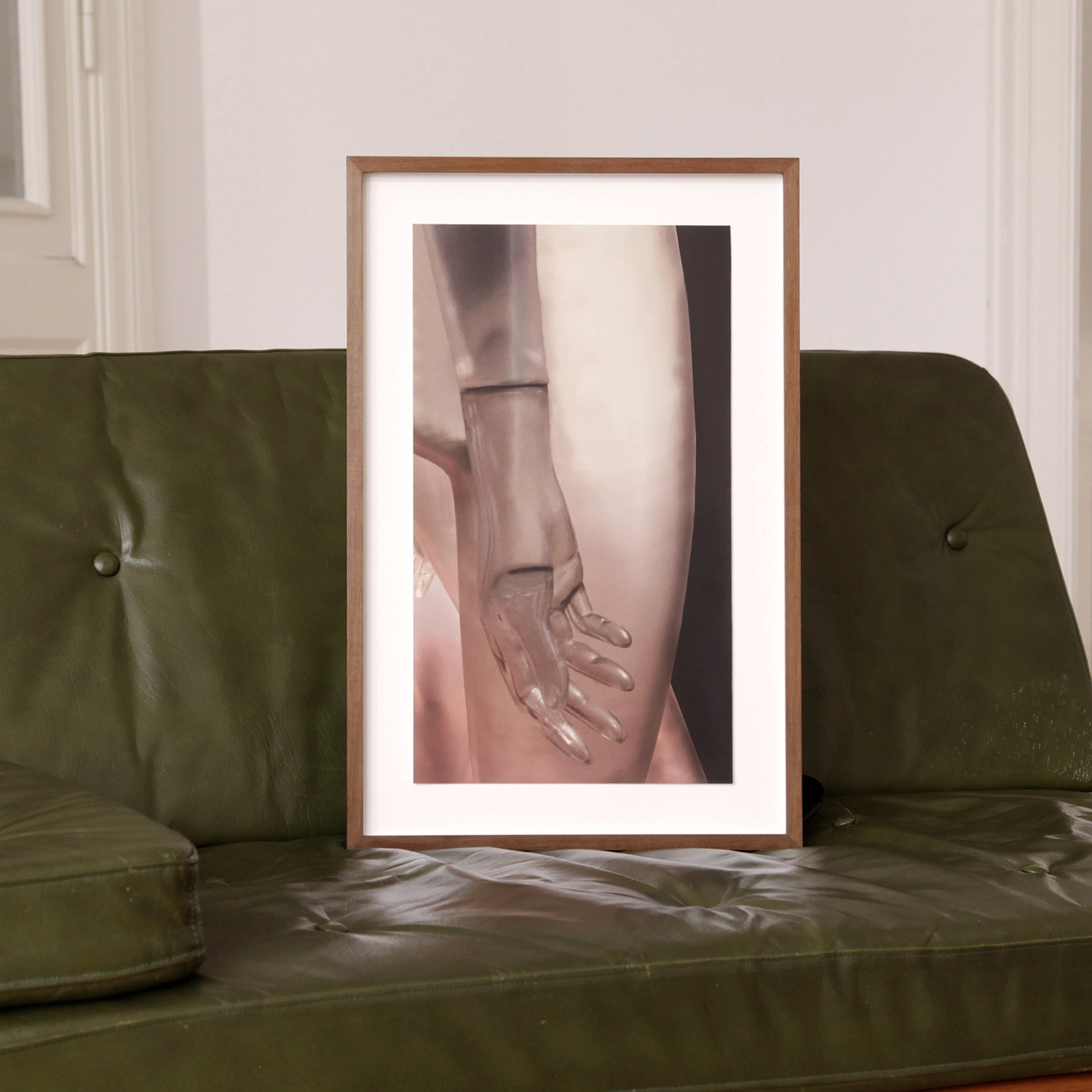 Louisa Clement Ohne Titel, 2019 Material Inkjet Print auf Hahnemühle Edition Size 15 Measurement 42 x 23 cm rückseitig signiert und nummeriert Auflage 15 + 2 AP Details about the frame Handgefertigter gewachster Nussbaum-Holzrahmen, Außenmaße ca. 51,0 x 32,9 cm, inkl. Museumsglas und rückseitiger Aufhängung The new and affordable way to buy contemporary art Strictly limited and signed art editions Limited stock From emerging talents to today’s most sought-after artists Easy and free sign-up to shop our weekly deals SIGN UP NOW Already have an account? Über die Edition Wie schon in ihrer Werkserie „heads“ zeigt die Edition „o.T.“ aus dem Jahr 2019 eine von Louisa Clement durch Glas fotografierte Schaufensterpuppe – aufgenommen mit dem Smartphone mit geringer Tiefenschärfe. In dieser Arbeit konzentriert sich die Künstlerin jedoch auf die Gliedmaßen. Trotz der unverkennbaren Künstlichkeit des Körpers lässt sich der herabhängenden Hand eine gewisse Zärtlichkeit zuschreiben. Verstärkt durch die körnigen Oberflächen und die Lichtreflexe wirken die Puppenglieder hier fast sinnlich-körperlich, zudem nähert sich die Fotografie dadurch visuell der Malerei an. Wo endet die reale, wo beginnt die virtuelle Welt? Eine einfache Antwort auf diese Frage gibt es heute nicht mehr. Die künstlerischen Versuchsanordnungen von Clement spielen mit der künstlich hergestellten, vermeintlich idealen Oberfläche, die den Druck auf die so gar nicht makellosen Individuen erhöht. Gleichzeitig scheint auf, was den idealen Abziehbildern fehlt: Sie sind unheimlich perfekt, in aller Doppeldeutigkeit. Über die Künstlerin Das menschliche Ich im digitalen Zeitalter hinterfragt Louisa Clement in Fotografien, Videos, Wandarbeiten, Skulpturen und VR-Arbeiten. 55 Porträts von Schaufensterpuppen zeigte sie 2014 in ihrer Abschlussarbeit „heads“ als Meisterschülerin des Fotografen Andreas Gursky an der Kunstakademie Düsseldorf. Es sind Köpfe ohne Mund, Nase und Augen, gesichts- und geschlechtslos, „ein ideales Sinnbild für Normierung“, sagt die Künstlerin. In ihrem Werk „Repräsentantinnen“ hat Clement nun – in Zusammenarbeit mit einer auf Sexpuppen spezialisierten chinesischen Firma – mit künstlicher Intelligenz ausgestattete Doubles ihrer selbst geschaffen, die sich bewegen und kommunizieren können und die sie mit ausuferndem Wissen über sich selbst gefüttert hat. Wer bin ich, was repräsentiere ich, was unterscheidet mich von meinem Abbild, wer will ich sein? Clement reflektiert in ihren Werken auf eindrückliche Weise dringlich-zeitgemäße Fragen in Zeiten permanenter Selbstbespiegelung. Latest Exhibitions (Selection) Werke von Louisa Clement sind aktuell noch in der Jubiläumsausstellung „All the Lonely People“ von VATMH (Villa Aurora & Thomas Mann House) im silent green Kulturquartier in Berlin zu sehen – die Künstlerin war 2019 Stipendiatin der Villa Aurora in L.A. (bis 10.10.2021). In der Ausstellung „Double Bind“ in der Kunsthalle Gießen präsentierte Clement außerdem bis vor wenigen Tagen u.a. drei ihr selbst nachempfundene KI-Puppen. „Remote Control“ hieß dagegen ihre Ausstellung im Sprengel Museum Hannover im Jahr 2019, in der fast 100 ihrer Werke gezeigt wurden; die Schau war im Anschluss noch im Ludwig Forum für Internationale Kunst in Aachen zu sehen. Links of Interest (Selection) 3sat-„Kulturzeit“-Beitrag über Louisa Clement und ihre Ausstellung „Double Bind“ in der Kunsthalle Gießen (2021) Website der Künstlerin Beitrag im „Deutschlandfunk“ über die Überblicksschau der Künstlerin im Sprengel Museum Hannover (2019) Louisa Clement bei Kunst & Denker, Contemporary Discover More Art Julius Hofmann Lurking Teen, 2021 Tal R Lillen, 2019 Katharina Sieverding VII/196/18 , 1973/2004