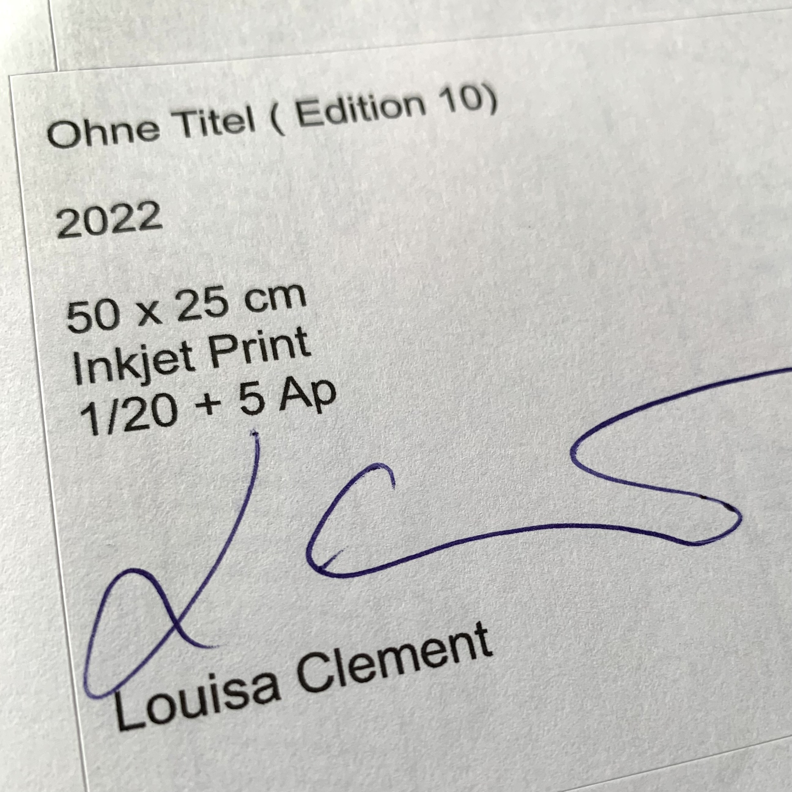 Louisa Clement Ohne Titel (Edition 10), 2022 Material Archival Inkjet Print on Hahnemühle Barite Paper Edition Size 20 Measurement Sheet size 50.4 x 23.3 cm Edition 20 + 5 AP Signed and numbered on the reverse of the label Details about the frame Handmade black stained and waxed maple wood frame, external dimensions approx. 51.6 x 24.5 cm, including spacer bar and museum glass and rear suspension The new and affordable way to buy contemporary art Strictly limited and signed art editions Limited stock From emerging talents to today’s most sought-after artists Easy and free sign-up to shop our weekly deals SIGN UP NOW Already have an account? About the Edition While Louisa Clement's "representatives" impress with their perfection, the Bonn artist goes the opposite way in the edition made exclusively for artflash: We see a deliberately raw and imperfect, multiply fragmented female torso, composed of artificial female genres such as mannequins and avatars. Even the violence of the creative process is self-confidently revealed: the chest has been rudely cut off, the head and middle of the body are made of a different material than the arms and neck, and the lower body is missing entirely. In times when women's rights are curtailed in many places (e.g. USA) and brutal violence is used against women (e.g. Iran), this depiction of femininity takes an unmistakable position. At the same time, the tilted head remarkably does not indicate a buckling, a traditional victim role, but rather preserves a certain dignity for the protagonist ‒ just as the entire sheet of the edition conveys a surprising transhuman warmth, be it because Clement uses the parts from a 'handmade' iPhone -has put the photos together, either because she has printed the art body on barite paper, a material that has a soft feel due to its pronounced felt structure, which gives the motif an impressive depth. And so when looking at Clement's work, in addition to thinking about the representation of bodies and their medialization, there is also a very direct question: Why doesn't the sight of the untitled torso leave us depressed? Perhaps because the female body, despite its fragmentation, has a melancholy elegance that ultimately radiates strength through all the hurt. About the artist Louisa Clement (b. *1987) questions the human self in the digital age in photographs, videos, wall works, sculptures and VR works. In 2014 she showed 55 portraits of mannequins in her thesis “heads” as a master student of the photographer Andreas Gursky at the Düsseldorf Art Academy. They are heads without a mouth, nose or eyes, faceless and genderless, "an ideal symbol of standardization," says the artist. In her work "Representatives", Clement has now - in cooperation with a Chinese company specializing in sex dolls - created doubles of herself equipped with artificial intelligence, which can move and communicate and which she has fed with excessive knowledge about herself. Who am I, what do I represent, what distinguishes me from my image, who do I want to be? In her works, Clement impressively reflects urgent contemporary questions in times of permanent self-reflection. Latest Exhibitions (Selection) Until April 30, 2023, Louisa Clement is represented with works in the highly acclaimed group exhibition “Transformers” at the Museum Frieder Burda in Wiesbaden. The gallery EIGEN+ART in Berlin is showing works by Louisa Clement in the solo exhibition "compression" until April 15, 2023. In 2021, the exhibition "Double Bind" in the Kunsthalle Gießen presented the latest work cycle by Louisa Clement, the so-called "Representatives", AI dolls that are based on the artist. Links of Interest (Selection) Die Stuttgarter Nachrichten berichten über die aktuelle Ausstellung "Transformers" im Museum Frieder Burda) Website der Künstlerin Beitrag im „Deutschlandfunk“ über die Überblicksschau der Künstlerin im Sprengel Museum Hannover (2019) Louisa Clement bei Kunst & Denker, Contemporary Website des Museum Frieder Burda Artikel in der NZZ über die Ausstellung "Transformers" im Museum Frieder Burda Discover More Art Joan Jonas Blue Bee, 2015 Naja Conrad-Hansen Paper Carousell Leopard, 2022