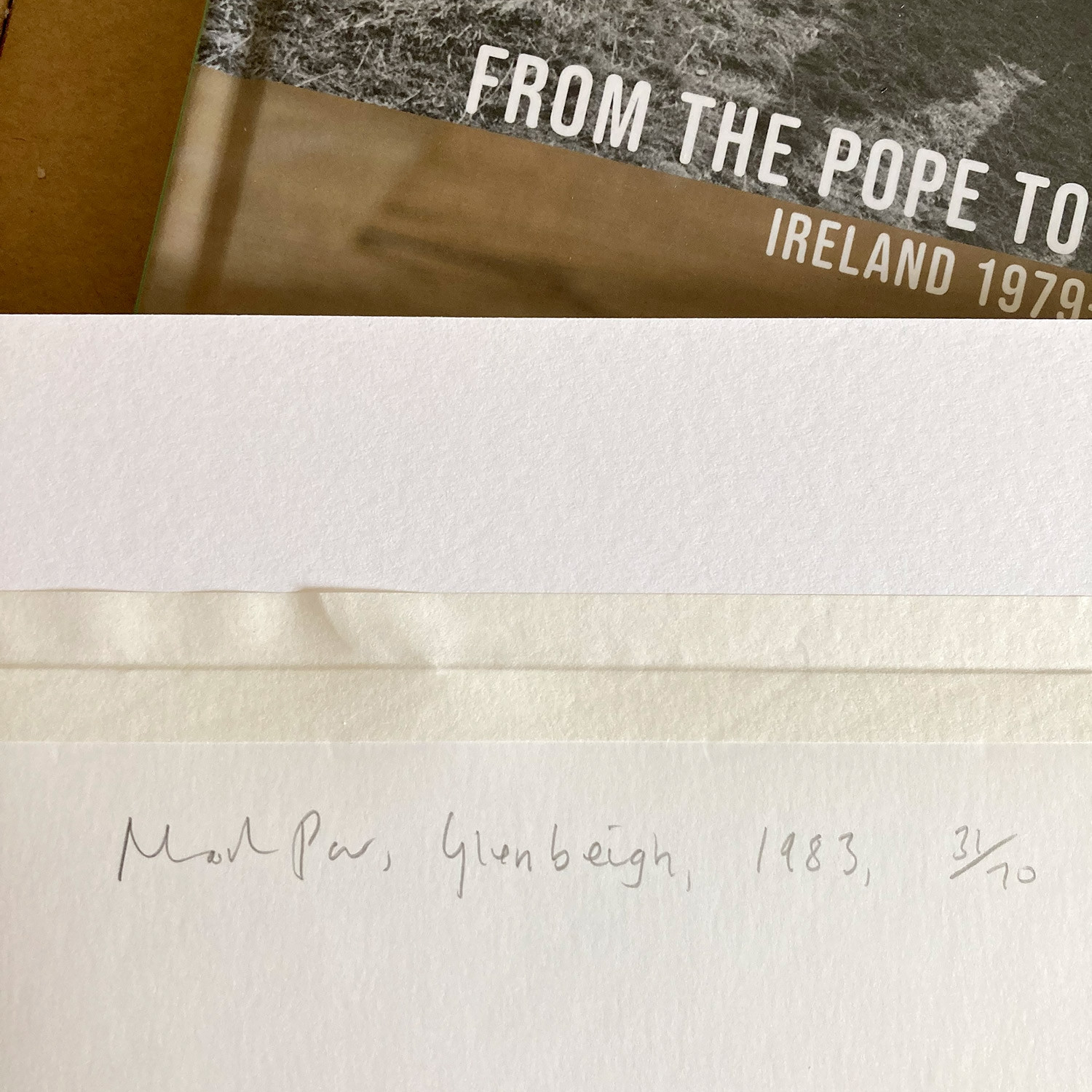 Martin Parr Glenbeigh Races, County Kerry, 1983 , 2021 Material Silver Gelatine Print Edition Size 70 Measurement 18 x 27 cm Auflage 70 + 10 AP rückseitig signiert, datiert, betitelt + nummeriert inkl. Collectors Edition/Katalog "From the Pope to a Flat White. Ireland 1979-2019" Details about the frame Handgefertigter Ahorn-Holzrahmen, schwarz gebeizt und gewachst, inkl. Passepartout und entspiegeltem Museumsglas, Außenmaße: ca. 33,0 x 42,0 cm, mit rückseitiger Aufhängung. The new and affordable way to buy contemporary art Strictly limited and signed art editions Limited stock From emerging talents to today’s most sought-after artists Easy and free sign-up to shop our weekly deals SIGN UP NOW Already have an account? Über die Edition Martin Parr liebt Pferderennen. Entsprechende Szenen hielt er in berühmten britischen Wettkampfstätten wie in seiner Heimatstadt Epsom, in Ascot, aber auch in Südafrika, Australien oder Dubai fest. Die Fotografie „Glenbeigh Races“ entstand bereits im Jahr 1983 im irischen County Kerry am Rossbeigh Beach, auf dem dieses Rennen seit 1924 veranstaltet wird. Parr fotografierte zu jener Zeit noch in Schwarz-Weiß, so auch bei weiteren traditionellen Events wie Pferde- und Viehauktionen oder religiösen Festen der Katholiken. Irland, wo er selbst zwei Jahre lebte, war damals gezeichnet von Rezession und hoher Arbeitslosigkeit. Die Edition „Glenbeigh Races“, 2021 signiert und in limitierter Auflage gedruckt, liegt seiner Collector’s Edition „From the Pope to a Flat White. Ireland 1979‒2019‟ bei. Irlands jüngste Geschichte lässt sich mit Parr wunderbar eindrücklich nachvollziehen. Über den Künstler Für Martin Parr gibt es drei elementare Dinge im Leben: Lachen, Glück und Talent. Davon hat der 1952 in Epsom geborene Brite mehr als genug. Mit wenig Melancholie, aber dafür mit umso mehr Humor ausgestattet, fotografiert Parr seit Anfang der 70er Jahre erfolgreich. Er ist ein Chronist unserer Zeit, seine Perspektive auf die Welt ist einzigartig. Freizeit, Konsum und Kommunikation sind seine Themen. Das gilt für seine Schwarz-Weiß-Fotografien ebenso wie für seine späteren Motive in oftmals grellen Farben. In Parrs Bilderkosmos scheint alles übertrieben und wirkt zugleich so banal, dabei zutiefst menschlich. Von 2004 bis 2012 war Parr Professor für Fotografie an der University of Wales Newport, zwischen 2013 und 2017 der Präsident von Magnum Photos. Im Jahr 2017 eröffnete die Martin Parr Foundation in Bristol. Latest Exhibitions (Selection) 2021, Parr’s Ireland. 40 Years of Photography, Gallery of Photography Ireland, Dublin (bis 4.9.) 2021/2022 Facing Britain. Britische Dokumentarfotografie seit den 1960er Jahren, Kunsthalle Darmstadt (3.9.2021‒9.1.2022), Mönchehaus Museum Goslar (20.2.‒1.5.2022) Links of Interest (Selection) Website Martin Parr Website der Martin Parr Foundation Video-Beitrag bei „ttt“ über seine Retrospektive 2019 im NRW-Forum Düsseldorf Discover More Art Olaf Hajek Golden Tear, 2020 Candida Höfer Museum für Naturkunde und Vorgeschichte Oldenburg VI, 1998 Candida Höfer Museum für Naturkunde u. Vorgeschichte Oldenburg XIV, 1998 Nam June Paik o.T. – aus der Sydney Mappe, 1990