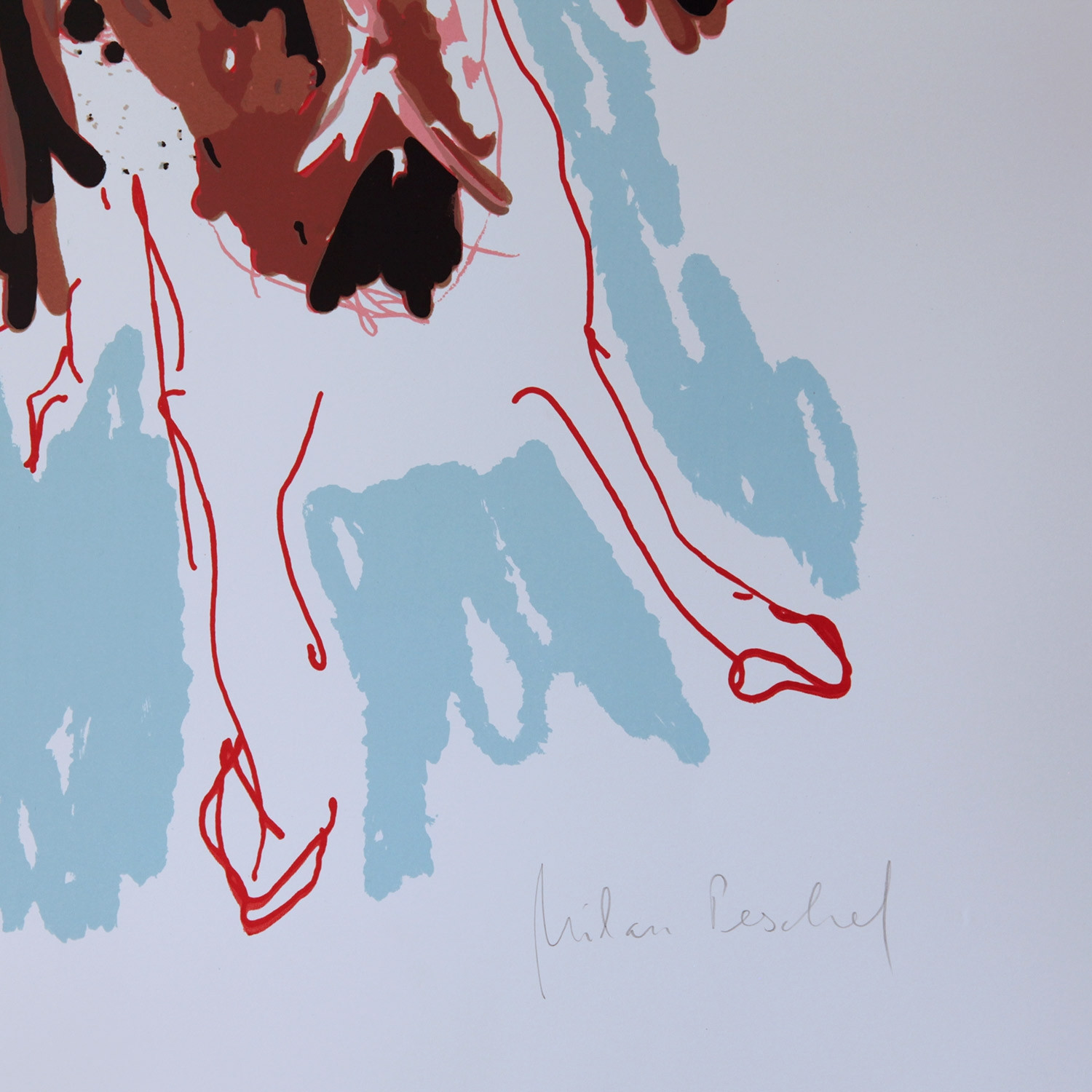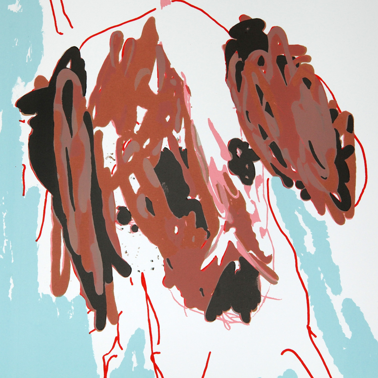 Milan Peschel Ohne Titel (Hund blau), 2020 Material Siebdruck Edition Size 100 Measurement 50 x 70 cm auf der Vorderseite von Hand signiert und nummeriert Auflage 100 Details about the frame Handgefertigter schwarz lasierter und gewachster Ahorn-Holzrahmen, inkl.10mm Distanzleiste, Außenmaße des Rahmens ca. 76 x 56 cm. Inkl. rückseitiger Aufhängung The new and affordable way to buy contemporary art Strictly limited and signed art editions Limited stock From emerging talents to today’s most sought-after artists Easy and free sign-up to shop our weekly deals SIGN UP NOW Already have an account? Über die Edition Der Humor an der Grenze zur Melancholie und Verzweiflung, der die von Milan Peschel gespielten Figuren auszeichnet, ist auch in seinen Malereien und Grafiken zu erahnen. Unter die vielen Köpfe – Porträts von Familienmitgliedern, Freund*innen, Kolleg*innen, ihm selbst, häufig liegend, teils wie bandagiert – mischt sich auch ein Hund. Und zwar dieser leicht verschreckt wirkende knopfäugige, dunkelohrige, den Peschel in seinem Siebdruck aus dem Jahr 2020 verewigt hat. Ein „Optimissimus“ sei er, sagt der Künstler über sich. Und wer wollte einen solchen nicht an seiner Seite haben. Genauso wie diesen süßen kleinen Vierbeiner. Über den Künstler Milan Peschel ist bekannt als vielfacher Filmpreisgewinner im Sterbedrama „Halt auf freier Strecke“, aus Blockbustern wie „Schlussmacher“ an der Seite von Matthias Schweighöfer oder aus Castorf- und Pollesch-Inszenierungen an der Berliner Volksbühne. Als einer, der die Underdogs und Verlierertypen verkörpert – auf liebevollste, im besten Sinne komische Weise. Früh wusste der Ostberliner, dass er schauspielern wollte. Über den Umweg als Tischler und Bühnentechniker kam er zum Theater und über die Kolleg*innen dort in Kontakt mit der Künstlerszene in Prenzlauer Berg. Anfang 20 war er da und seitdem malt er: anfangs auf Möbel, dann auf Leinwände, inzwischen auf dem iPad. Warum er malt? „Ich muss es einfach machen“, sagte er der FAZ. Beste Voraussetzungen also für die Kunst! Links of Interest (Selection) Milan Peschel mit bildender Kunst bei Instagram Künstlerporträt in der FAZ Discover More Art Candida Höfer Museum für Naturkunde und Vorgeschichte Oldenburg VI, 1998 Candida Höfer Museum für Naturkunde u. Vorgeschichte Oldenburg XIV, 1998