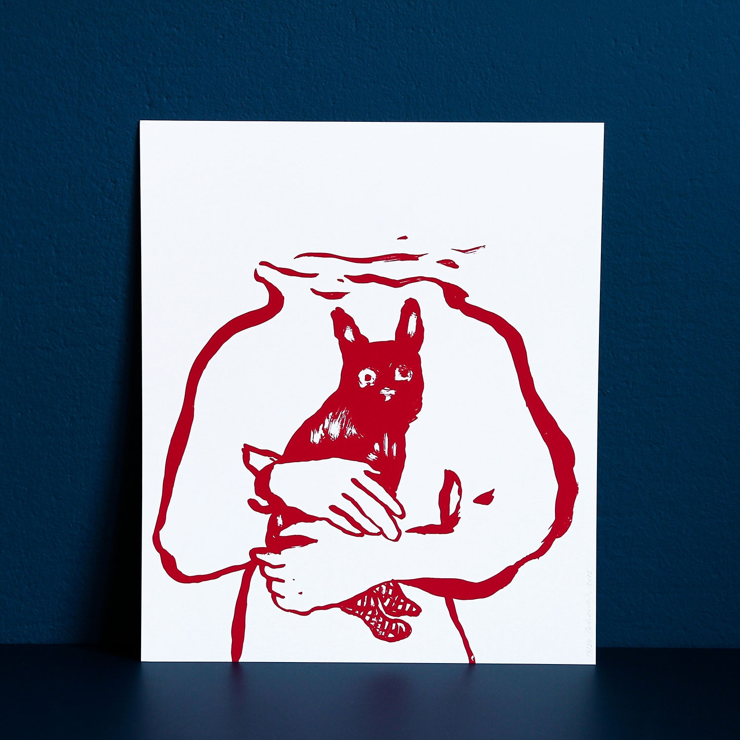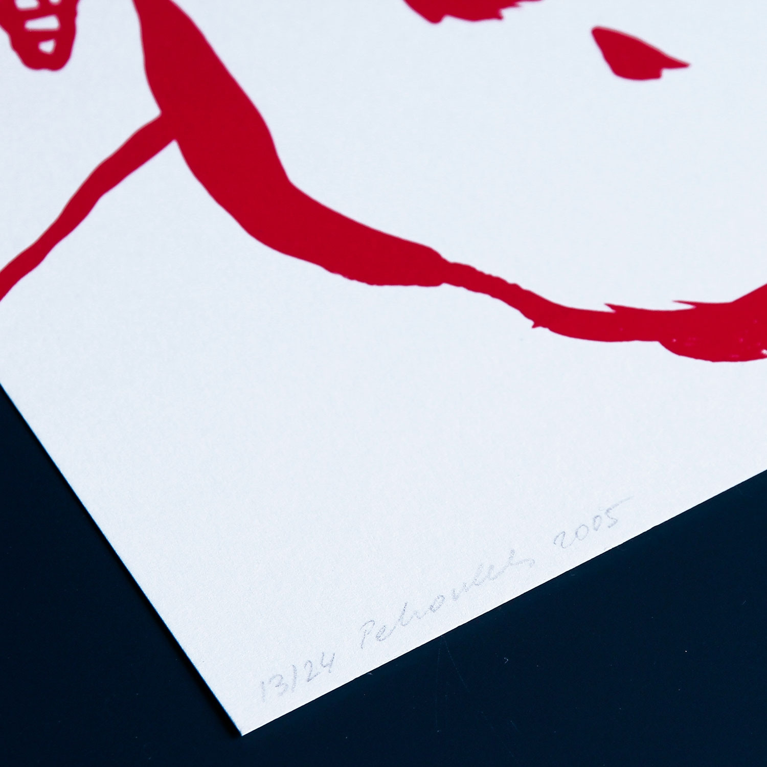 „Rougir“, deutsch „erröten“, so heißt eine ganze Serie von Siebdrucken der Künstlerin Françoise Pétrovitch. Mit der Grundfarbe Rot, einer Farbe, die Emotionen und Gefahr symbolisiert, wurde diese Arbeit gedruckt. Weiß ist die zweite Hauptfarbe des Bildes, nicht nur als Hintergrund.