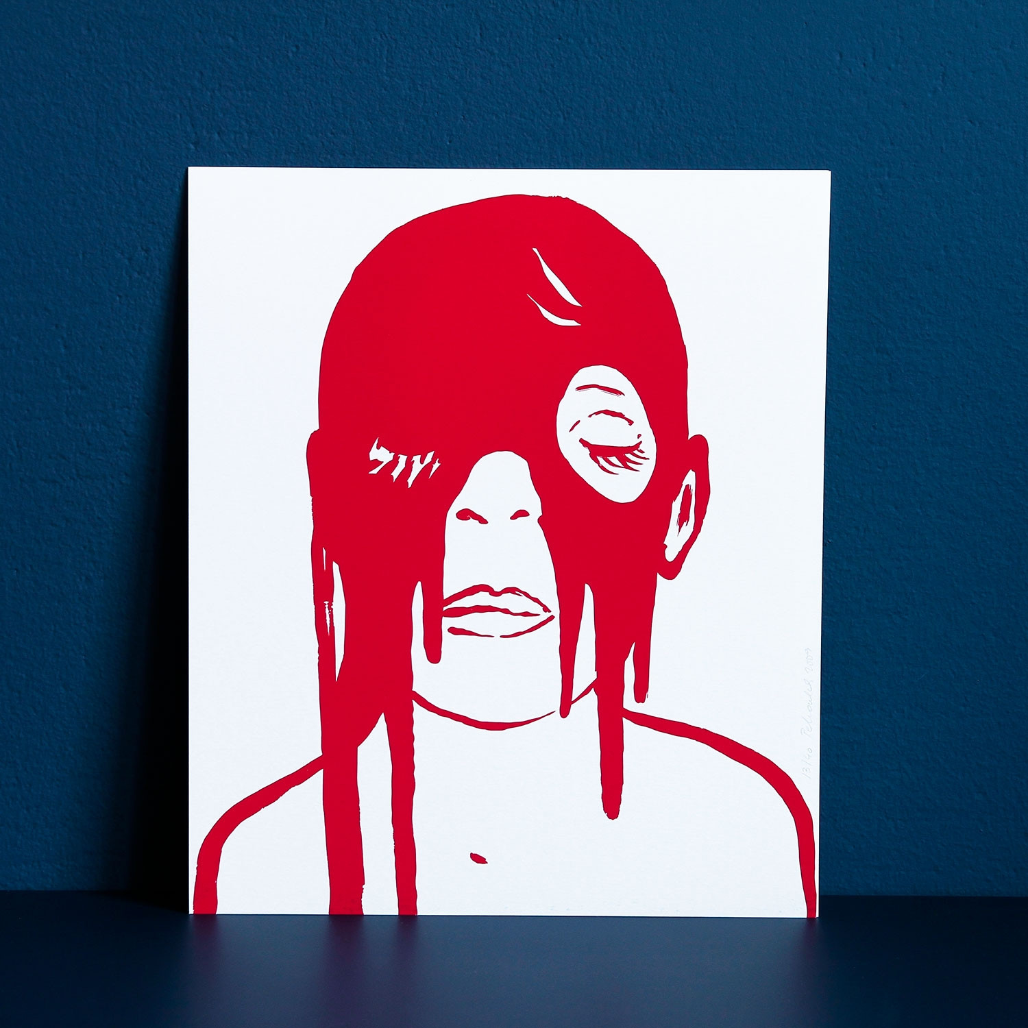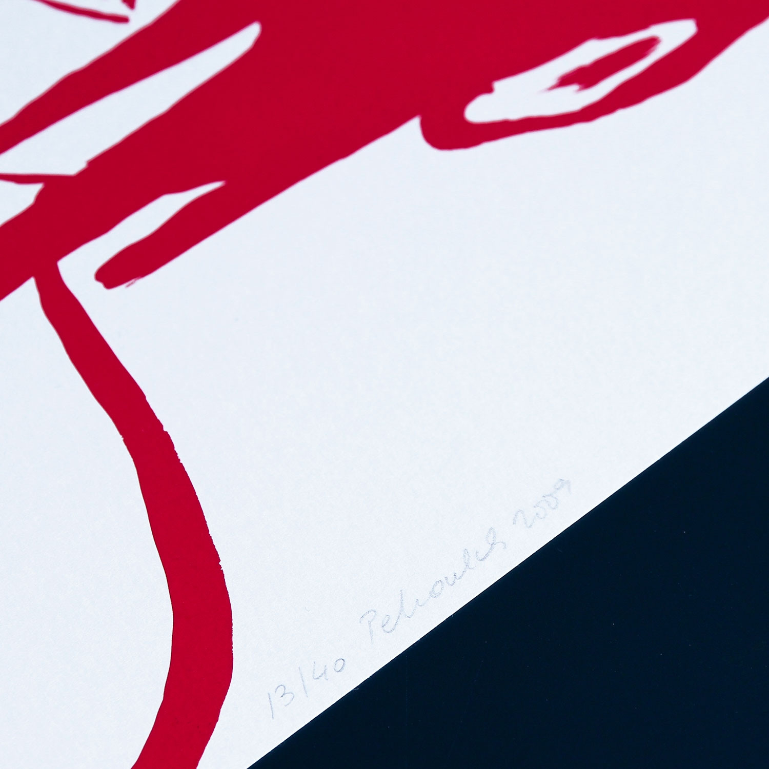 „Rougir“, deutsch „erröten“, so heißt eine ganze Serie von Siebdrucken der Künstlerin Françoise Pétrovitch. Mit der Grundfarbe Rot, einer Farbe, die Emotionen und Gefahr symbolisiert, wurde diese Arbeit gedruckt. Weiß ist die zweite Hauptfarbe des Bildes, nicht nur als Hintergrund.