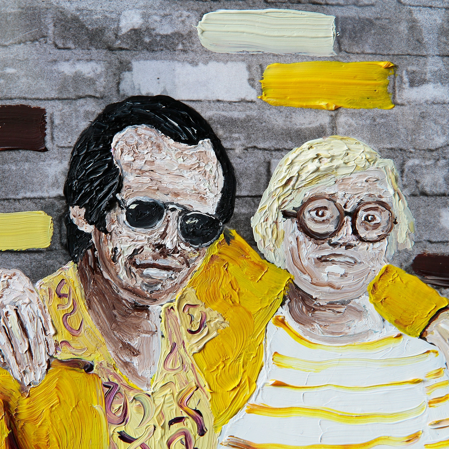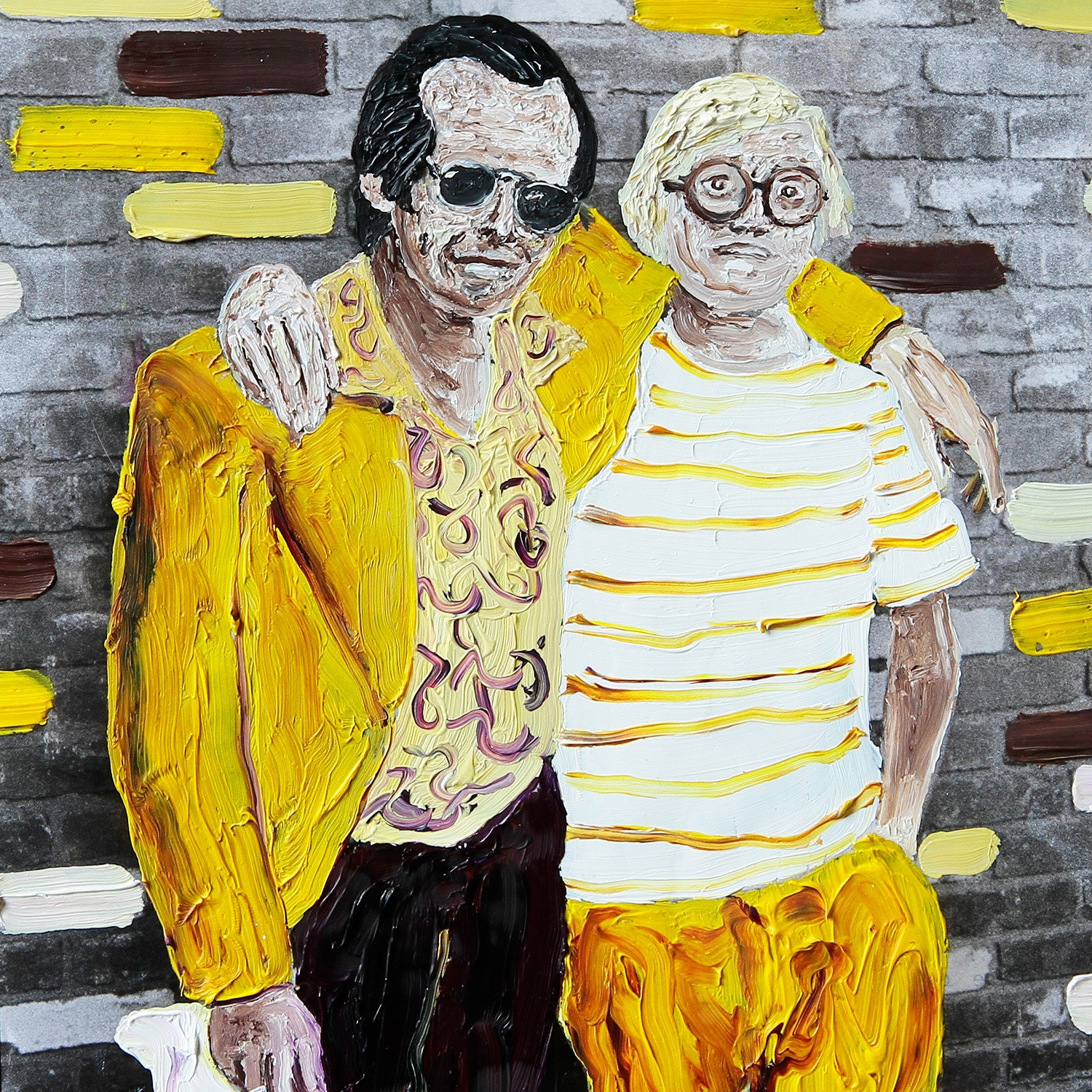 René Holm Partners in Party ‒ Jack Nicholson + David Hockney 1978, 2020 Material Öl auf Magazin-Papier Production Method rückseitig auf Rahmen signiert, betitelt, datiert Edition Size 1 Measurement Blattmaß: 29 x 22 cm Rahmenmaß: 35,5 x 28,5 cm Details about the frame Handgefertigter, gewachster Natur-Eichen-Holzrahmen, 8mm Distanzleiste, Außenmaße ca. 35,5 x 28,5 cm, inkl. rückseitiger Aufhängung, staubdicht verschlossen. The new and affordable way to buy contemporary art Strictly limited and signed art editions Limited stock From emerging talents to today’s most sought-after artists Easy and free sign-up to shop our weekly deals SIGN UP NOW Already have an account? Über das Werk Im Jahr 2012 hat René Holm damit begonnen, Seiten aus Magazinen herauszutrennen und mit Ölfarbe zu bemalen. Seine Auswahl ist rein subjektiv, Material wird, was ihn interessiert. Oft sind es Porträts anderer Künstler, aber auch Modefotografien und zeithistorische Abbildungen können darunterfallen. Die einen komplettiert Holm einfach mit einem Extrafarbüberzug, anderen fügt er malerisch Kommentare hinzu, die farbig markierten Backsteine im Hintergrund von „Partners in Party“ etwa, oder indem er Augen oder Gesichter unkenntlich macht. So legt er in „Second Option“ einen schwarzen Balken über Andy Warhols Blick und lässt in „Kind Gott“ die Züge von Jonathan Meese und Jörg Immendorff gleich ganz verschwimmen. In den Arbeiten manifestiert sich Holms persönliche Auseinandersetzung mit Kunstgeschichte und Zeitgeist, mit Hochkultur und Pop; die Titel bieten weitere narrative Anknüpfungspunkte. Die Art und Weise, in der Holm dabei „High and Low“ nonchalant miteinander vermengt, ähnelt nicht ohne Grund dem Sampling, spiegelt sich darin doch sein eigener Zugang zur Kunst, seine Biografie. Über den Künstler René Holms künstlerische Laufbahn begann auf der Straße: „Chung“ nannte sich der 1967 geborene Künstler, als er noch mit Graffitis Wände, Mauern, Brücken und Gebäude seiner dänischen Heimatstadt Esbjerg markierte ‒ auf so bemerkenswerte Weise übrigens, dass er 1985 die lokale Graffiti-Meisterschaft gewann. Erst mit über 30 absolvierte er ein Studium an der Kunstakademie in Aarhus. Inzwischen hat sich Holm als Künstler längst etabliert, stellt seine Kunst international in Galerien, Museen und auf Messen aus. In Dänemark wird er von den Galerien Benoni und Franz Pedersen vertreten, in Berlin, wo er seinen zweiten Wohnsitz hat, von Selected Artists. Latest Exhibitions (Selection) Zuletzt hatte René Holm eine Einzelausstellung in der Galleri Benoni in Kopenhagen und war in Gruppenausstellungen in der Kunsthalle Feldbach und der Alfred Kubin Galerie in Wernstein/Inn vertreten. Ende Oktober eröffnet im Frederikshavn Kunstmuseum die Duoausstellung „Embrace the Darkness“, die Werke von ihm und Frodo Mikkelsen zeigt. Links of Interest (Selection) René Holms Website René Holm bei Selected Artists René Holm bei Artland Magazine René Holm bei Galleri Benoni, Dänemark Discover More Art René Holm Second Option, 2020 René Holm Kind Gott ‒ Jonathan Meese und Jörg Immendorff, 2019/2020 René Holm Totale Schönheit, 2020 René Holm Blinded by Brush Strokes, 2020
