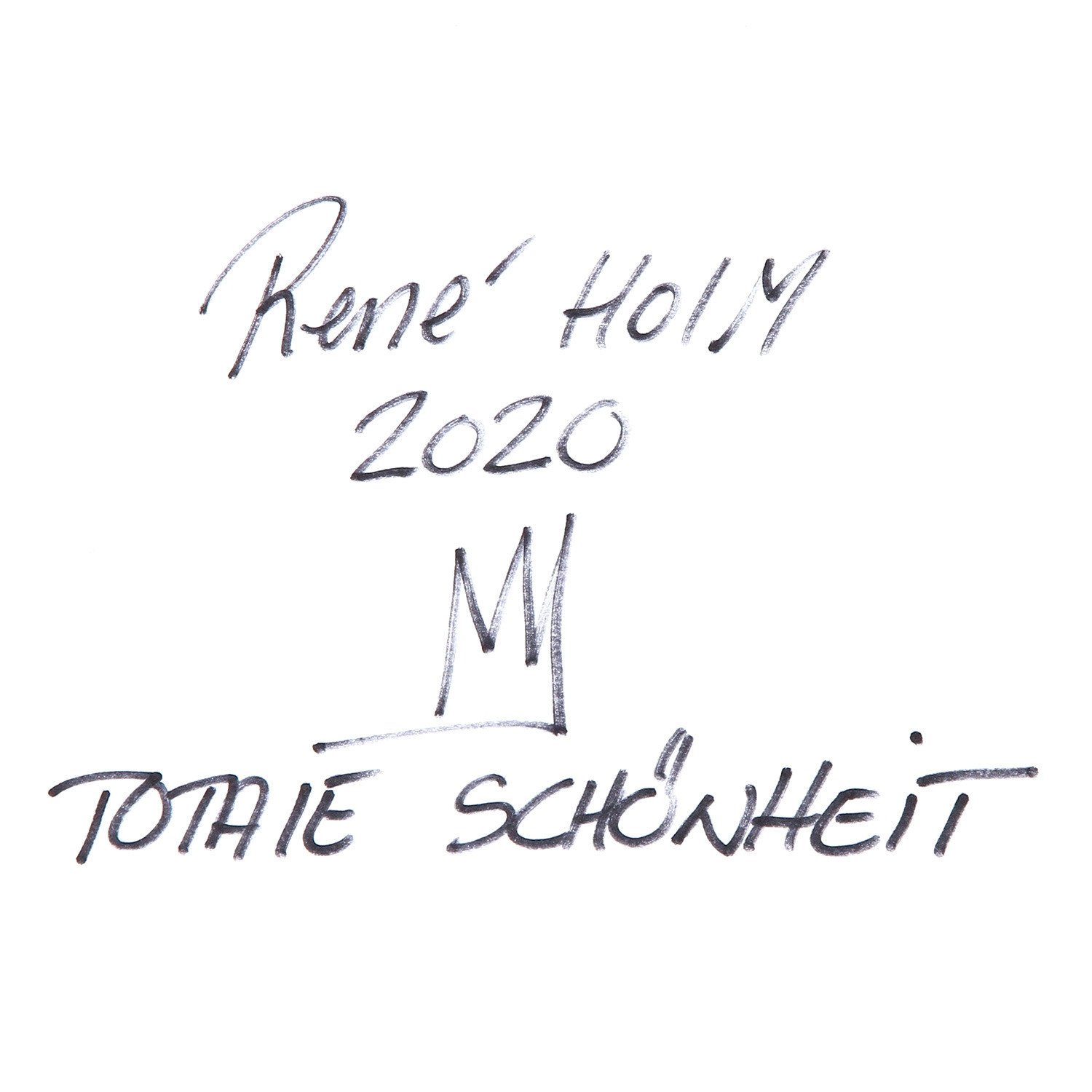 René Holm Totale Schönheit, 2020 Material Öl auf Magazin-Papier Production Method rückseitig auf Rahmen signiert, betitelt, datiert Edition Size 1 Measurement Blattmaß: 29,5 x 22 cm Rahmenmaß: 37,4 x 28,7 cm Details about the frame Handgefertigter, gewachster Natur-Eichen-Holzrahmen, 8mm Distanzleiste, Außenmaße ca.37,4 x 28,7 cm, inkl. rückseitiger Aufhängung, staubdicht verschlossen. The new and affordable way to buy contemporary art Strictly limited and signed art editions Limited stock From emerging talents to today’s most sought-after artists Easy and free sign-up to shop our weekly deals SIGN UP NOW Already have an account? Über das Werk Im Jahr 2012 hat René Holm damit begonnen, Seiten aus Magazinen herauszutrennen und mit Ölfarbe zu bemalen. Seine Auswahl ist rein subjektiv, Material wird, was ihn interessiert. Oft sind es Porträts anderer Künstler, aber auch Modefotografien und zeithistorische Abbildungen können darunterfallen. Die einen komplettiert Holm einfach mit einem Extrafarbüberzug, anderen fügt er malerisch Kommentare hinzu, die farbig markierten Backsteine im Hintergrund von „Partners in Crime“ etwa, oder indem er Augen oder Gesichter unkenntlich macht. So legt er in „Second Option“ einen schwarzen Balken über Andy Warhols Blick und lässt in „Kind Gott“ die Züge von Jonathan Meese und Jörg Immendorff gleich ganz verschwimmen. In den Arbeiten manifestiert sich Holms persönliche Auseinandersetzung mit Kunstgeschichte und Zeitgeist, mit Hochkultur und Pop; die Titel bieten weitere narrative Anknüpfungspunkte. Die Art und Weise, in der Holm dabei „High and Low“ nonchalant miteinander vermengt, ähnelt nicht ohne Grund dem Sampling, spiegelt sich darin doch sein eigener Zugang zur Kunst, seine Biografie. Über den Künstler René Holms künstlerische Laufbahn begann auf der Straße: „Chung“ nannte sich der 1967 geborene Künstler, als er noch mit Graffitis Wände, Mauern, Brücken und Gebäude seiner dänischen Heimatstadt Esbjerg markierte ‒ auf so bemerkenswerte Weise übrigens, dass er 1985 die lokale Graffiti-Meisterschaft gewann. Erst mit über 30 absolvierte er ein Studium an der Kunstakademie in Aarhus. Inzwischen hat sich Holm als Künstler längst etabliert, stellt seine Kunst international in Galerien, Museen und auf Messen aus. In Dänemark wird er von den Galerien Benoni und Franz Pedersen vertreten, in Berlin, wo er seinen zweiten Wohnsitz hat, von Selected Artists. Latest Exhibitions (Selection) Zuletzt hatte René Holm eine Einzelausstellung in der Galleri Benoni in Kopenhagen und war in Gruppenausstellungen in der Kunsthalle Feldbach und der Alfred Kubin Galerie in Wernstein/Inn vertreten. Im Frederikshavn Kunstmuseum fand die Duoausstellung „Embrace the Darkness“ statt, die Werke von ihm und Frodo Mikkelsen zeigt. Links of Interest (Selection) René Holms Website René Holm bei Selected Artists René Holm bei Artland Magazine René Holm bei Galleri Benoni, Dänemark Discover More Art René Holm Second Option, 2020 René Holm Partners in Party ‒ Jack Nicholson + David Hockney 1978, 2020 René Holm Kind Gott ‒ Jonathan Meese und Jörg Immendorff, 2019/2020