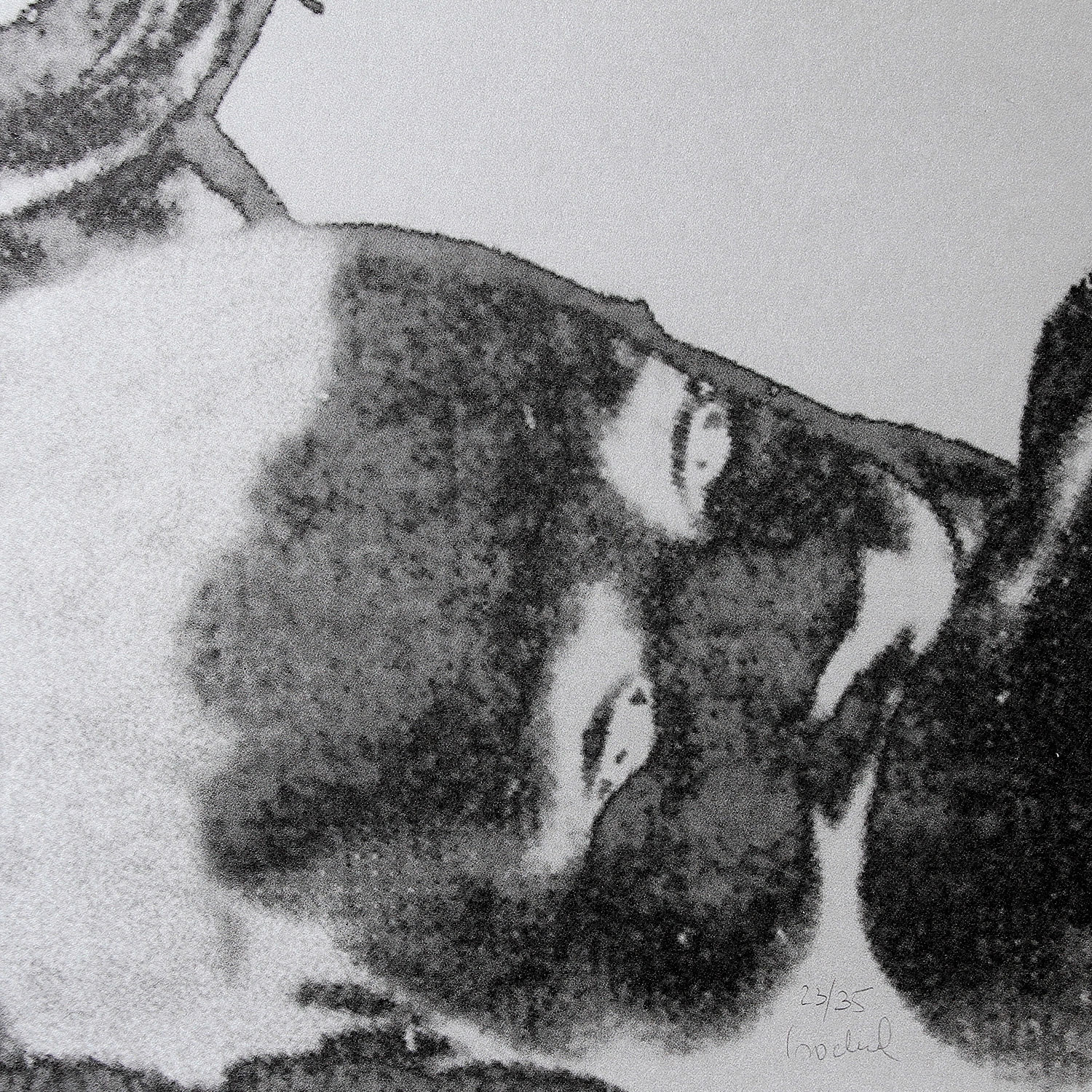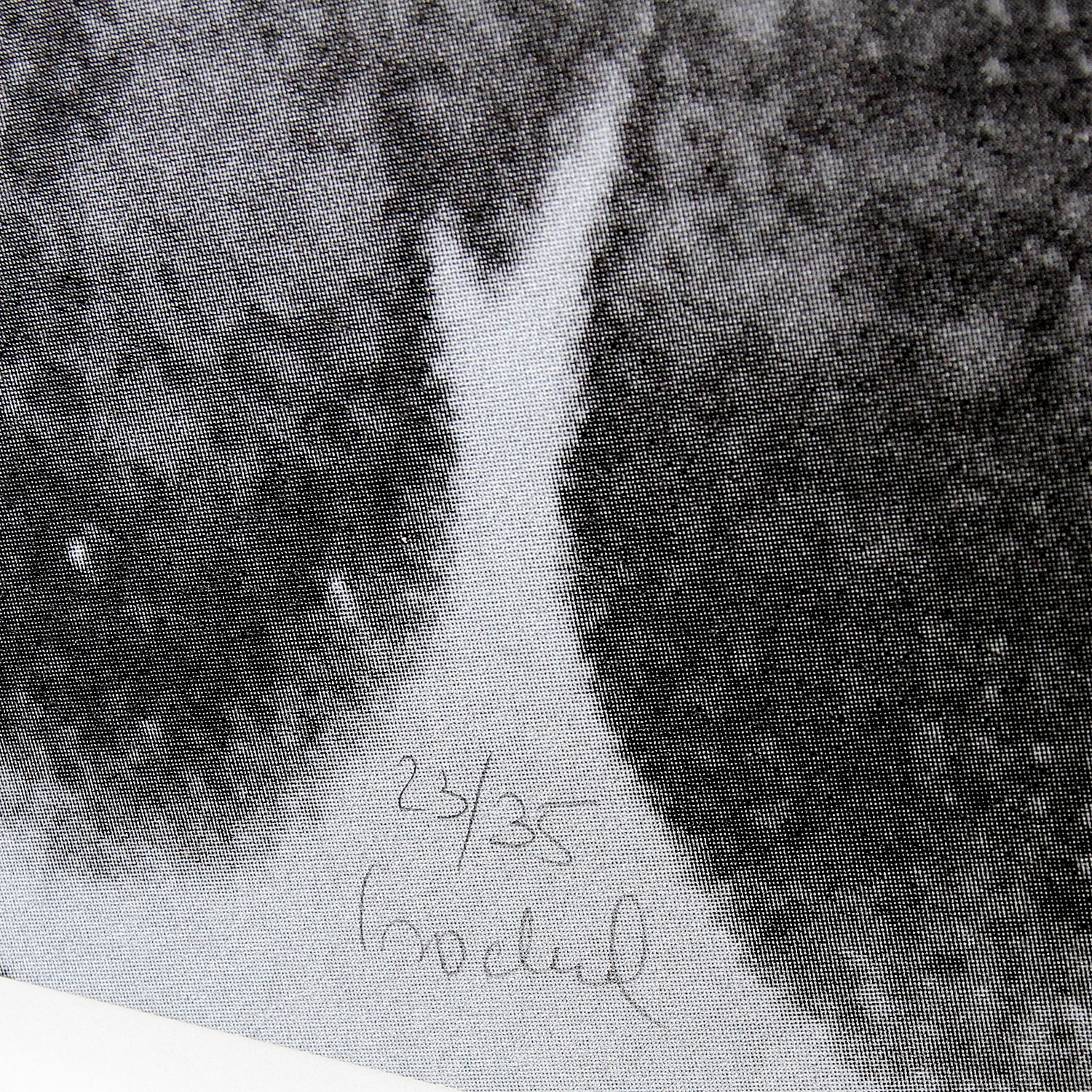 Rosemarie Trockel Ohne Titel, 1995 Material Siebdruck auf Karton Edition Size 35 Measurement 84 x 59,4 cm Auflage 35 mit e.a. nummeriert und signiert Details about the frame Handgefertigter, umbragrauer Holzrahmen mit den Außenmaßen: 65,2 x 89,8 cm, 10mm Distanzleiste, inkl. rückseitiger Aufhängung The new and affordable way to buy contemporary art Strictly limited and signed art editions Limited stock From emerging talents to today’s most sought-after artists Easy and free sign-up to shop our weekly deals SIGN UP NOW Already have an account? Über die Edition Dass die „Wollbilder“ zu ihrem Markenzeichen geworden sind, darüber ist Rosemarie Trockel selbst nicht besonders glücklich. Weiblichkeit und Frauenstereotype sind dennoch wiederkehrende Themen in ihrem Werk. Interessant ist vor diesem Hintergrund die Selbstbefragung beim Anblick ihrer signierten Serigrafie aus dem Jahr 1995. Im Charakter an ein Fotonegativ erinnernd, umgibt die dargestellte Szenerie etwas Geheimnisvolles. Im Bild zu sehen ist unverkennbar eine Person. Doch wen zeigt Rosemarie Trockel hier, und vor allem: in welcher Situation? Welche Gefühle ruft die Gesamtkomposition in uns hervor? Da uns die Künstlerin die Deutungshoheit überlässt, geraten wir auf subtile Art und Weise in einen Dialog mit unseren eigenen Emotionen. Über die Künstlerin Sie ist eine der bedeutendsten und vielseitigsten deutschen KünstlerInnen überhaupt: Rosemarie Trockel, die in den 70er Jahren erst Anthropologie, Theologie und Mathematik studierte, bevor sie zum Kunst- und Designstudium nach Köln wechselte, fertigt Skulpturen, Zeichnungen, Installationen und Objekte, die aus dem Rahmen fallen – unvorhersehbar, rätselhaft und lebendig. Ihre industriell hergestellten „Wollbilder“ mit eingewebten Logos vom urdeutschen Wollsiegel bis zum Playboy-Bunny haben Rosemarie Trockel in den 80er Jahren bekannt gemacht. Aufsehen erregte 1997 auf der documenta X ihre Arbeit „Haus für Schweine und Menschen“, 1999 war sie die erste Künstlerin im Deutschen Pavillon auf der Biennale Venedig und international stellte sie u. a. im MoMA in New York, in Boston und Chicago aus. Doppelbödige Inhalte, voller listiger Provokationen und oftmals verdeckter Abgründe – Rosemarie Trockel macht es ihrem Publikum nie leicht, und zugleich ist ihre Kunst viel zu spannend und emotional, als dass man sich nicht auf eine Auseinandersetzung mit ihr einlassen möchte. Latest Exhibitions (Selection) 2015, Märzôschnee ûnd Wiebôrweh sand am Môargô niana më, Kunsthaus Bregenz 2014, Rosemarie Trockel, Aspen Art Museum 2013, A Cosmos, Serpentine Gallery London 2012, Tea Party Pavillon, Documenta 13 Kassel 2010, Verflüssigung der Mutter, Kunsthalle Zürich 2008, Favourite Things, Donald Young Gallery Chicago 2005, Post-Menopause, Museum Ludwig Köln 2000, Drawings, Centre Pompidou Paris 1998, Werkgruppen: 1986 – 1998, Kunsthalle Hamburg Links of Interest (Selection) Rosemarie Trockel bei Sprüth Magers Beitrag vom Bayrischen Fernsehen zur Trockel-Ausstellung in der Kunsthalle Bregenz (2015) Die New York Times über Trockels Ausstellung im New Museum Der Guardian berichtet über Trockels Schau in der Serpentine Gallery, London Eines der raren Interviews mit der Künstlerin, erschienen im „Artforum“-Magazin (2003) Artikel in der FAZ: Trockel in New York Artikel in der FAZ: Rosemarie Trockel zum Sechzigsten Discover More Art A.R. Penck Fortschritt durch Integration, 1992 Candida Höfer Elbphilharmonie Hamburg Herzog & De Meuron Hamburg VIII 2016, 2020 Per Adolfsen Untitled, I, 2022 Coco Kühn Vierheit, verletzt, vergoldet, 2023 Janina Roider helio_final_01.psd, 2023, 2023