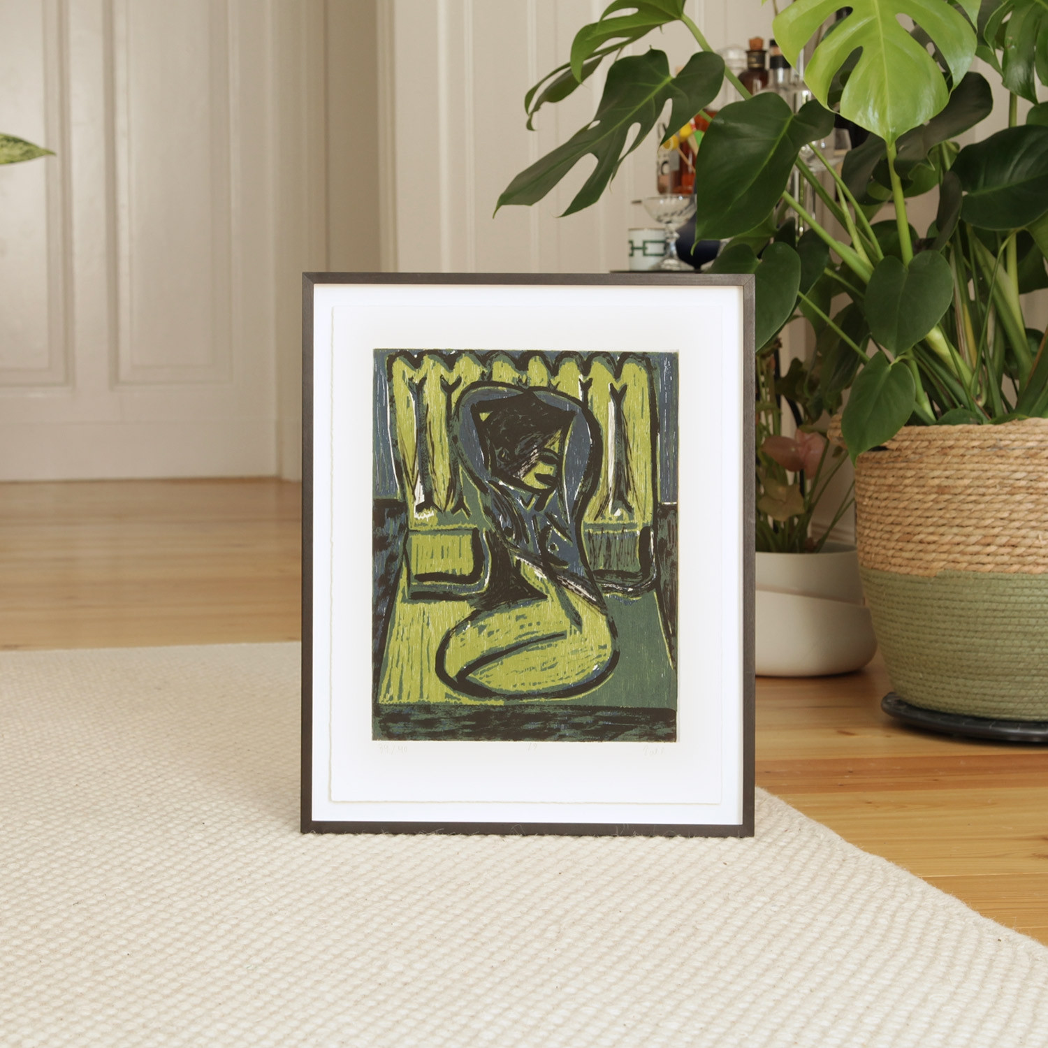 Handgefertigter schwarz gebeizter und gewachster Ahornholz-Rahmen inkl. Museumsglas, Maße ca. 47,4 x 39,0 cm, inkl. 8mm Distanzleiste, das Blatt wird hochgestellt montiert. Inkl. rückseitiger Aufhängung, staubdicht verschlossen.
