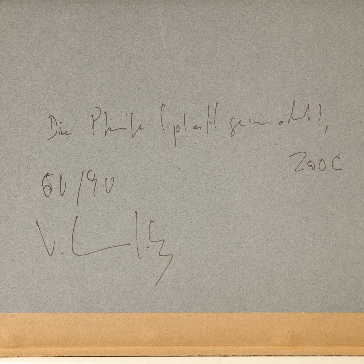Via Lewandowsky The whistle (flattened) / die Pfeife (platt gemacht), 2016 Material Bronze casting of a referee whistle pressed with 50 tons Edition Size 90 Measurement 7,5 x 2,7 x 0,5 cm Edition Size 90 signed and numbered Details about the frame Hand-customized malple frame, stained and waxed black. Size 33 x 25 cm, including spacers, the bronce cast is mounted on red felt, Incl. Artglass (70% UV). The new and affordable way to buy contemporary art Strictly limited and signed art editions Limited stock From emerging talents to today’s most sought-after artists Easy and free sign-up to shop our weekly deals SIGN UP NOW Already have an account? About the edition It is difficult to escape the power of authority - this was Via Lewandowsky's experience as a young artist in the GDR, even though he knew how to rebel. And authorities don't only exist in dictatorships. Thus Lewandowsky drives up a 50-ton road roller to disable the most important tool of referees, the whistle, and then casts the result, flattened as it is, in bronze and nobly frames it. The title of his signed and numbered edition, "Die Pfeife (flatt gemacht)" ("The Whistle (Flattened)"), can be read as both a laconic, sober statement and an ironic, biting insult - a provocative ambiguity that is generally characteristic of Lewandowsky's art. Created at the time of the 2006 World Cup, the work opens up further reference spaces. For soccer, as Germany's national sport, is anything but an ideology-free zone; rather, it proves to be highly charged and political, and the power structure that shapes it extends far beyond the possibilities of the referees to influence the game and its players. About the artist "Is your art beautiful?" was asked Via Lewandowsky in an interview. "Absolutely, it's the beauty of misunderstanding," was his answer. "But be careful, too much beauty makes you fat." Lewandowsky argues for an aesthetic of failure and celebrates the futility of doing. We are thus dealing with a skeptic in the Berlin artist, whose works, mostly installations, however, reveal not only tragedy but also comedy. Ironically and critically, he approaches certainties that rarely stand up to his scrutiny. For example, his adapted neon sign "Der Sozialismus siegt" ("Socialism wins") - mounted on a high-rise building in his hometown of Dresden during GDR times - parodies the former utopia. Lewandowsky studied scenography at the Dresden Academy of Fine Arts from 1982 to 1987, and his actions and happenings critical of socialism quickly caused a stir among cultural functionaries, so that he fled to the West in the summer of 1989, shortly before the fall of the Wall. Since his participation in documenta 9 in 1992, at the latest, Lewandowsky, who has received numerous awards for his "against-the-grain thinking," has been in demand internationally. Translated with www.DeepL.com/Translator (free version) Latest Exhibitions (Selection) In his 80-channel sound installation "Wie bitte," Via Lewandowsky explored the understanding and non-understanding of our conversations, our talking to the other person, silence, and waiting for answers in the space of St. Matthew's Church in Berlin 2022. Also this year, he participated in the project "A Bridge for Utopia" with a site-specific work that revolved around the old Dömitz railroad bridge in the Wendland region. A solo exhibition of Lewandowsky's work was also on view at the Ute Parduhn Gallery in Düsseldorf in 2022. Links of Interest (Selection) Webseite from Via Lewandowsky Via Lewandowsky is represented by Galerie Ute Parduhn, Düsseldorf Discover More Art Joseph Beuys Kosmische Wirtschaftsordnung, 1985 Stefan Marx, Jonathan Meese, Henning Wagenbreth etc Splendid Isolation Mappe (mit 40 Künstler*innen), 2020 Roman Manikhin Black Ladies I, 2018 Antoni Tàpies Clau del Foc XIII, 1973